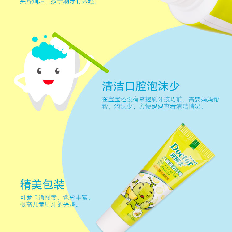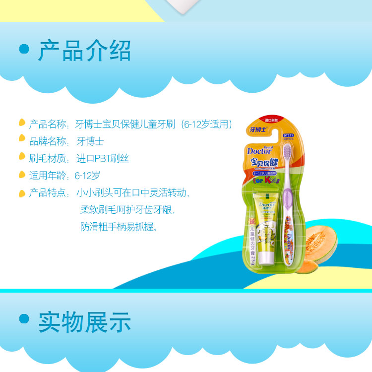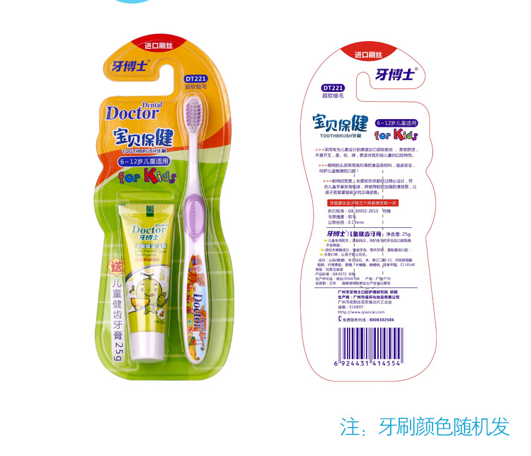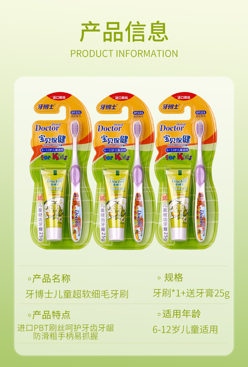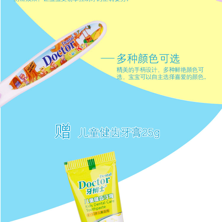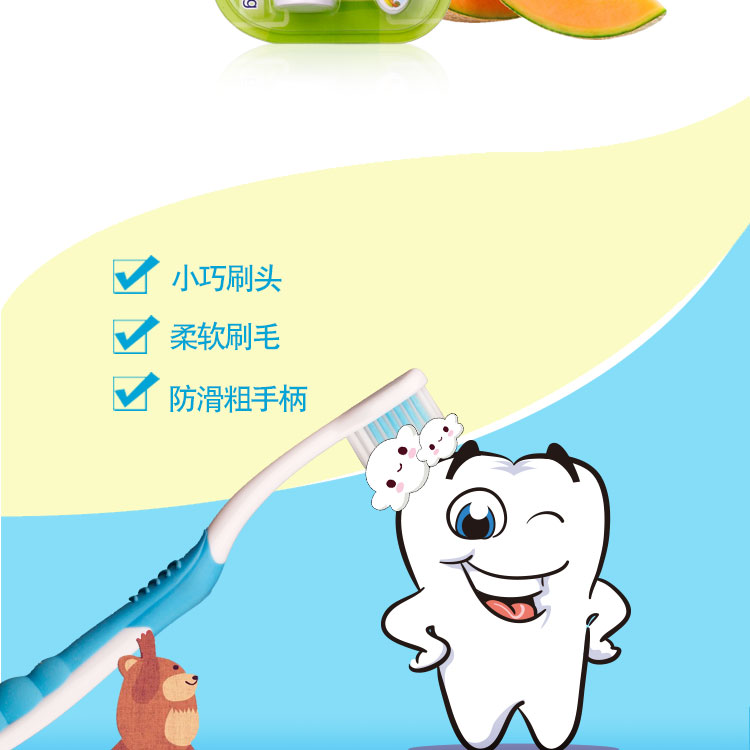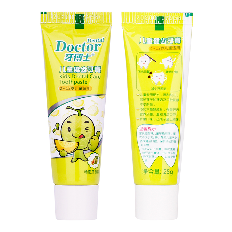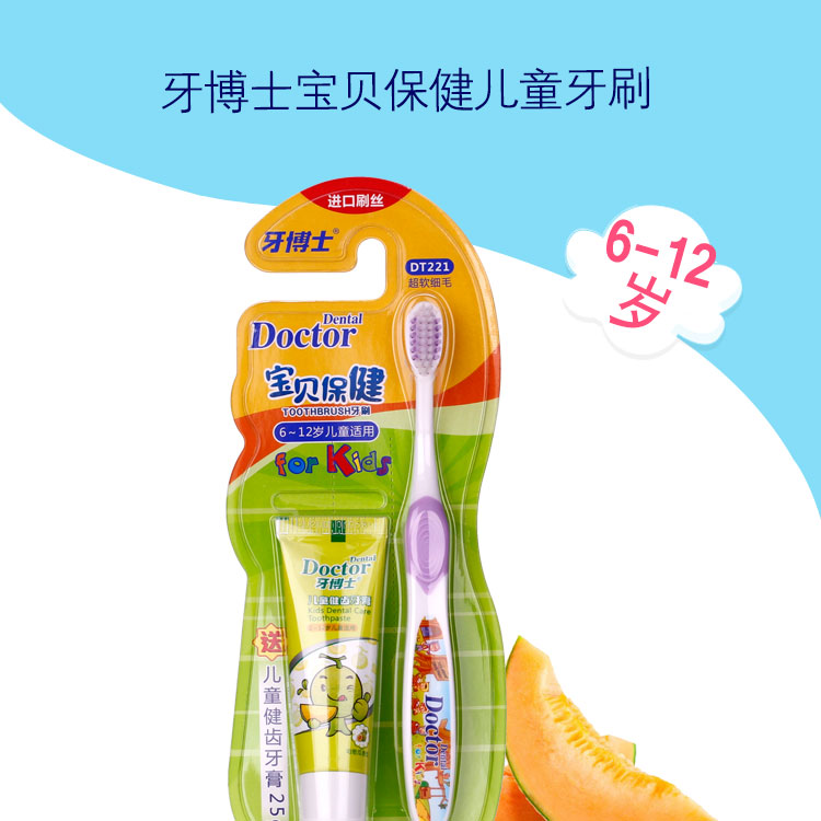 牙博士兒童2-6歲牙膏牙刷套裝細毛軟毛哈密瓜味(1支牙刷+1支25g牙膏)