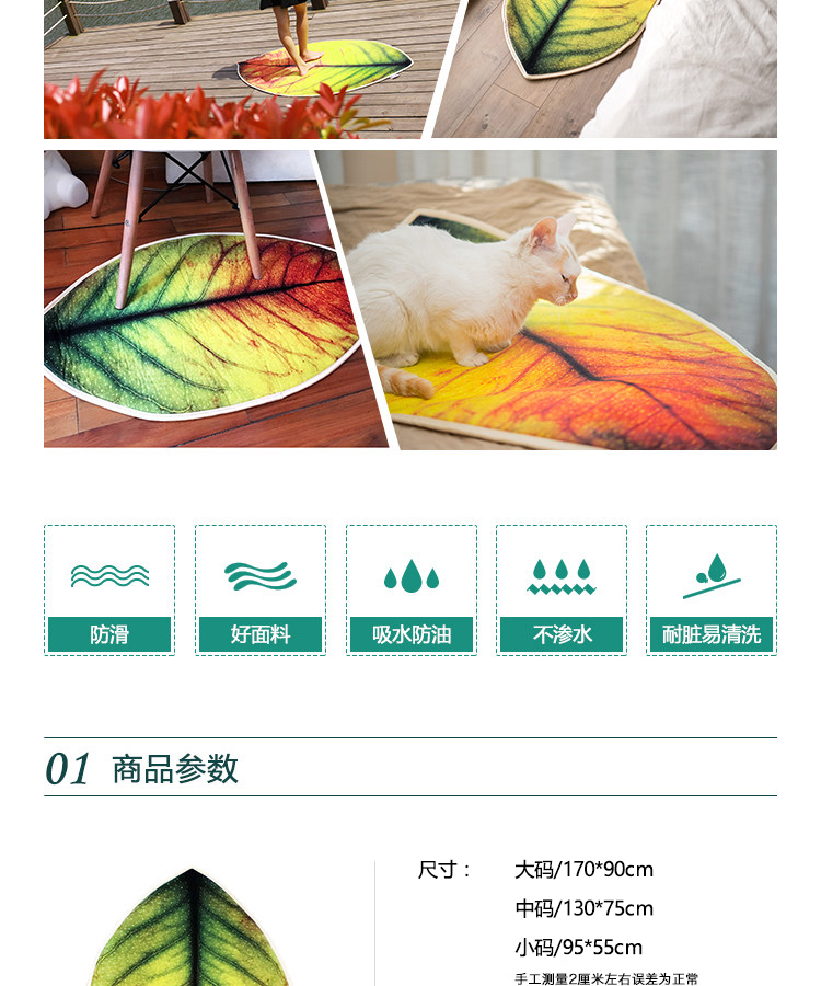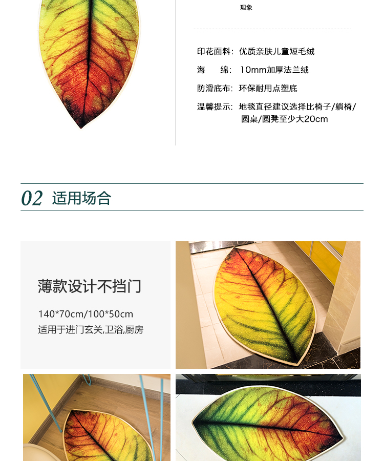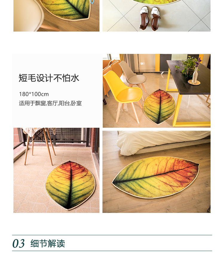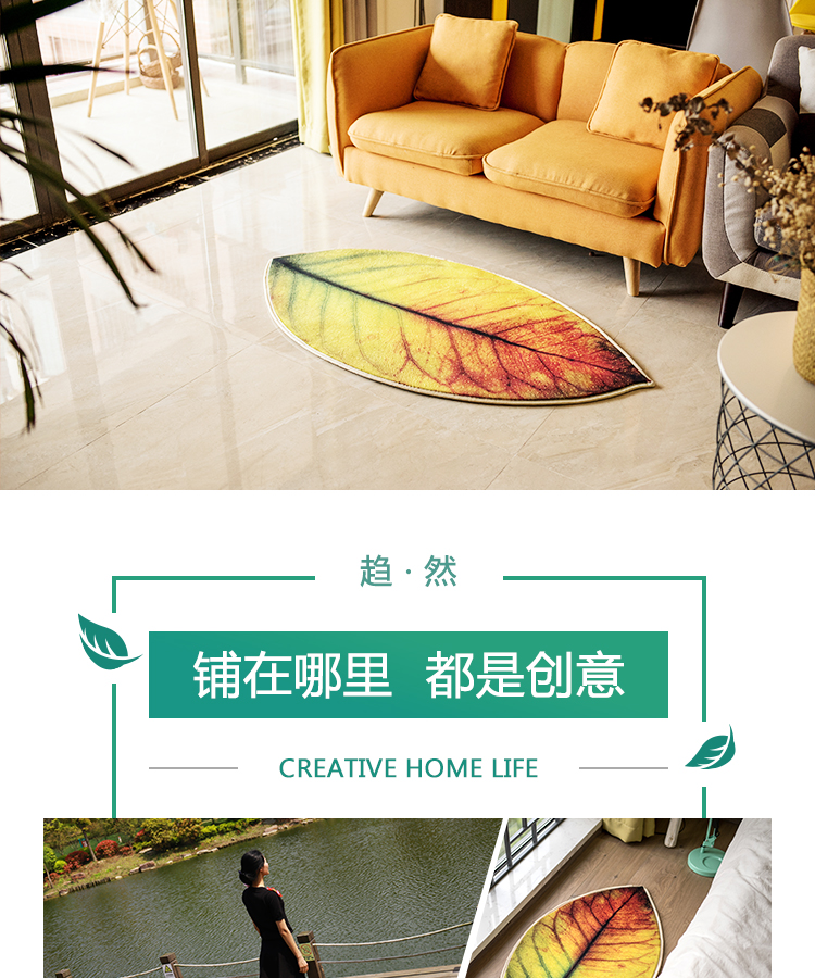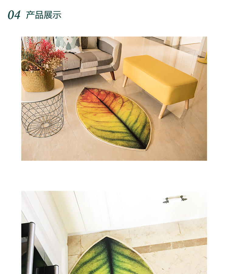 趨然(魅紅葉)創(chuàng)意樹葉子地墊印花寶寶爬行防滑客廳臥室床邊地毯