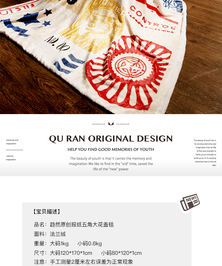 趨然(伍角)原創珊瑚絨毯子 夏季單人薄被子辦公室午休空調法蘭絨午睡毯