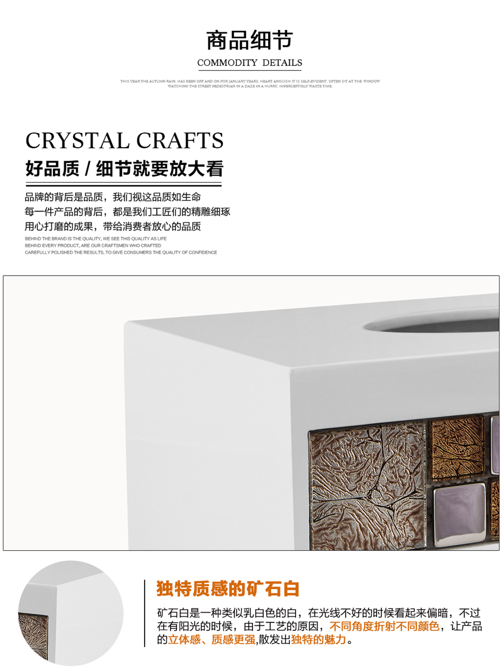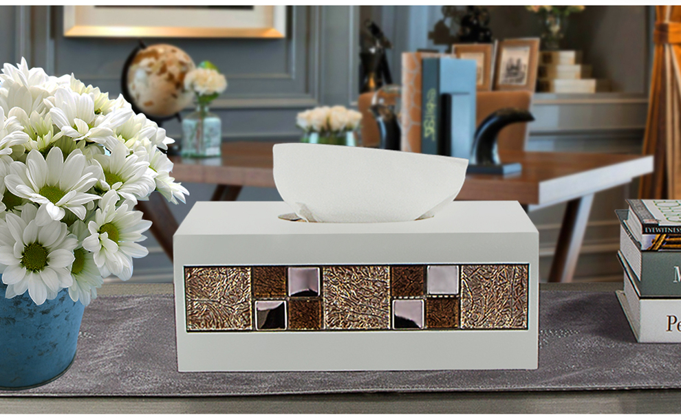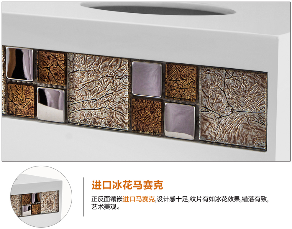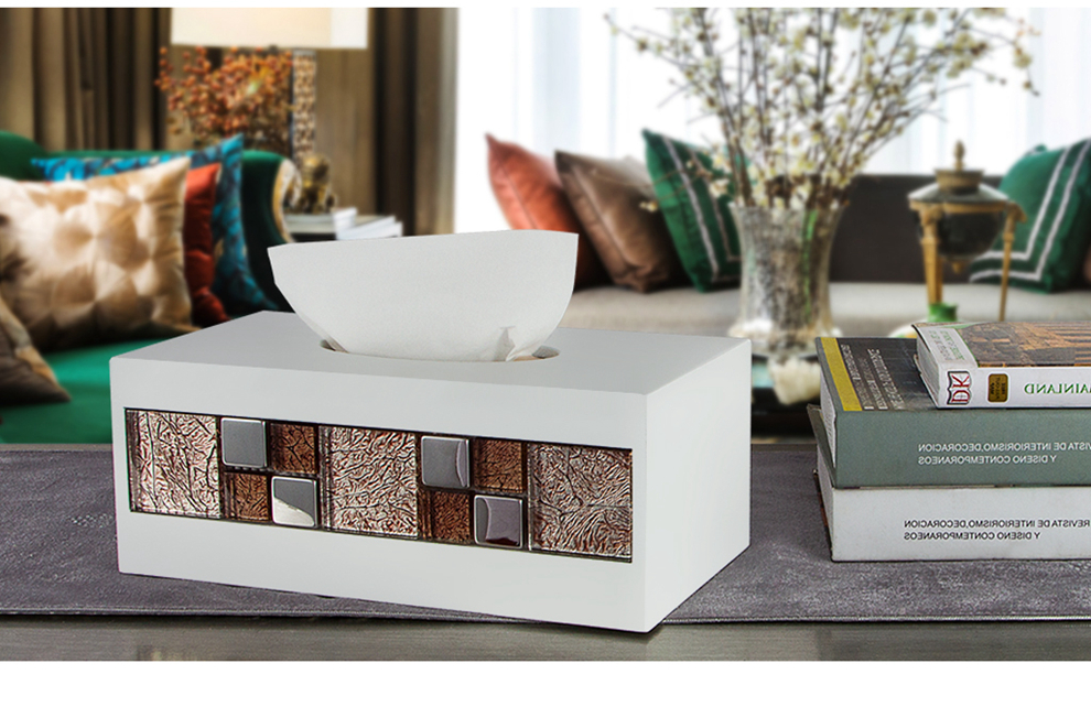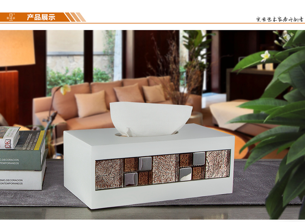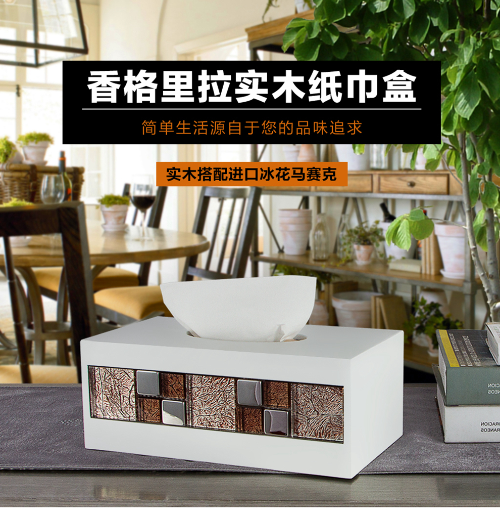 新古典歐式歐美樣板房創意家居軟裝飾品馬賽克實木紙巾盒抽紙盒
