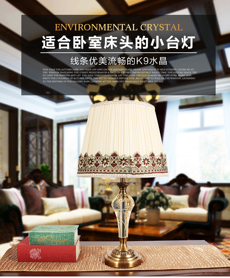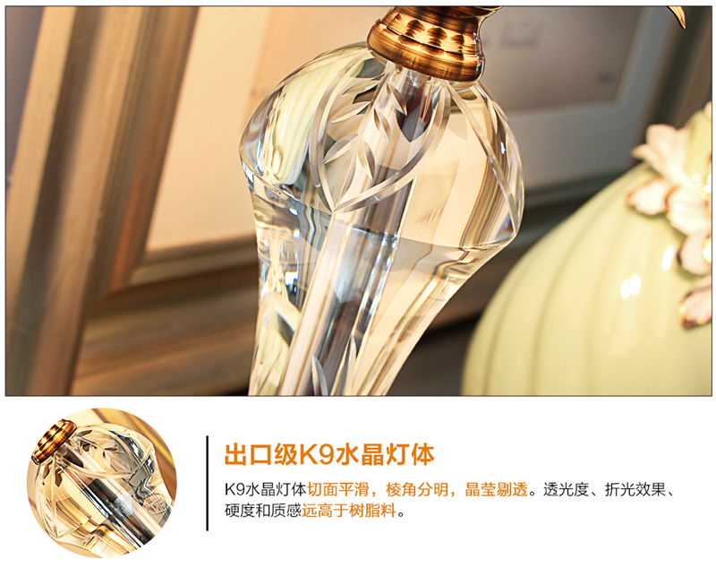 佳話坊歐式奢華現代簡約客廳K9水晶臺燈 臥室床頭臺燈高檔五金燈具柜燈