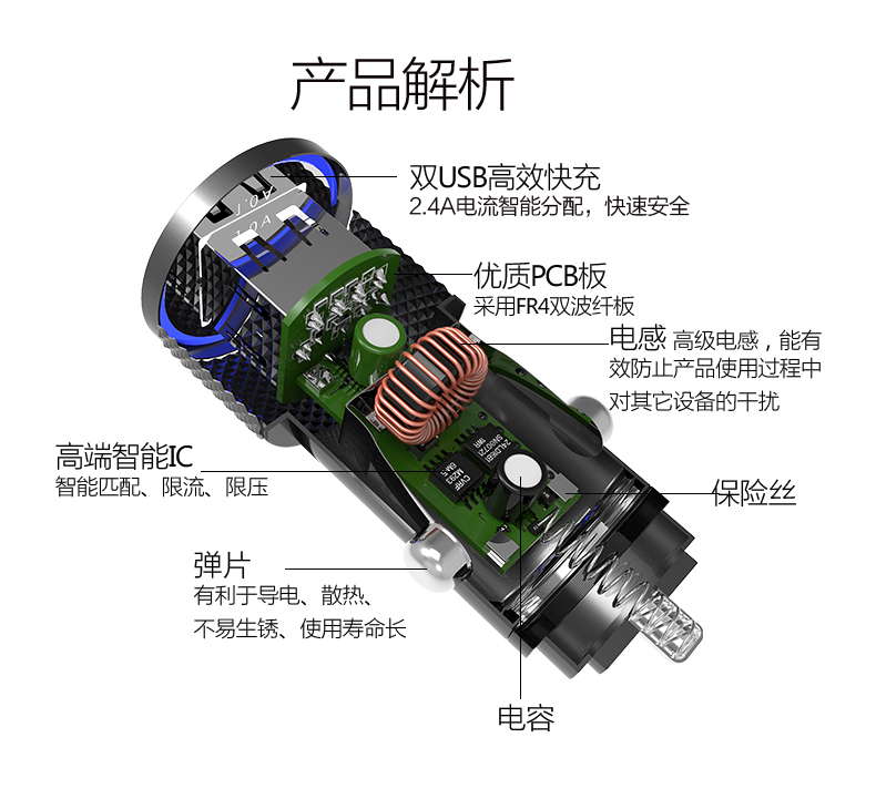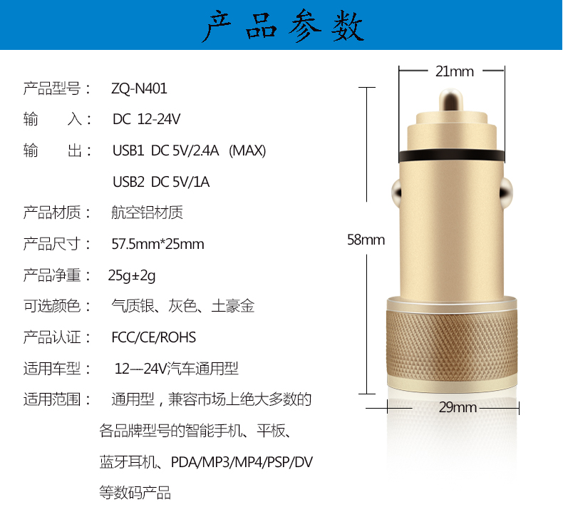 雙usb車充 小汽車安卓蘋果手機通用 智能快充 全金屬私模