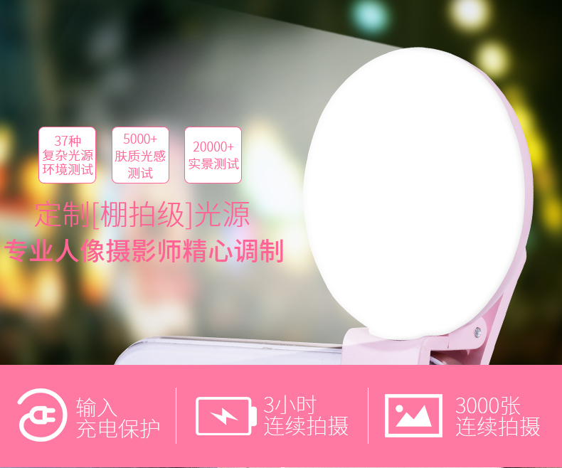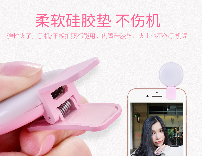 手機自拍補光燈,解決自拍光線不足照片暗淡無光等問題,小巧便于攜帶充電款。
