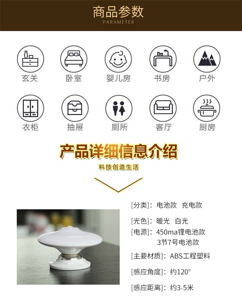 LED紅外線人體360度旋轉新奇特創意禮品小夜燈智能家居創意家居