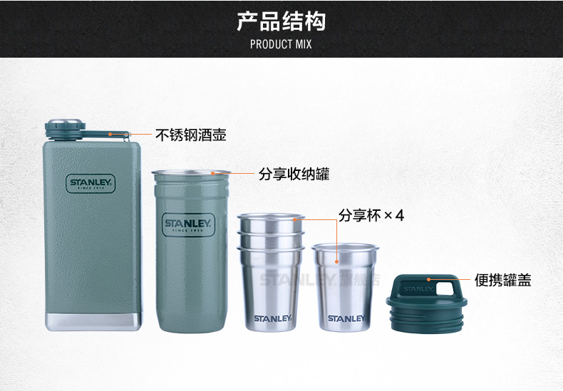 套裝包含:小酒壺收納罐合1個 分享杯4個