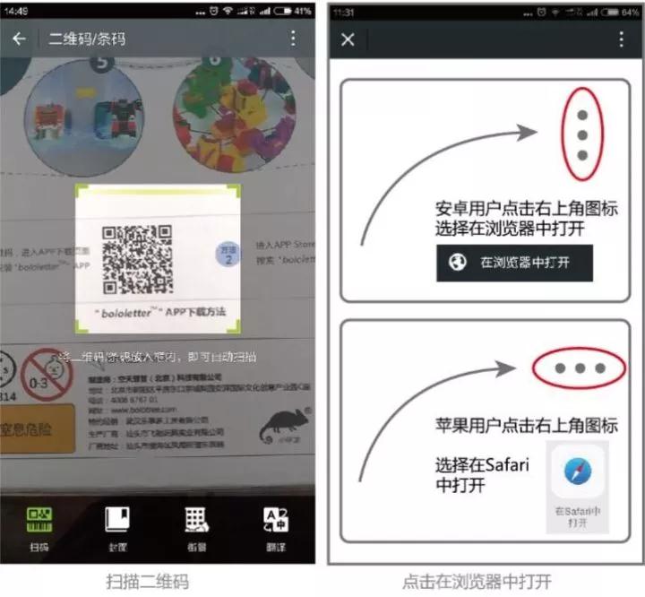 使用微信掃描二維碼后,請(qǐng)點(diǎn)擊右上角菜單選擇用瀏覽器打開當(dāng)前網(wǎng)頁(yè)。