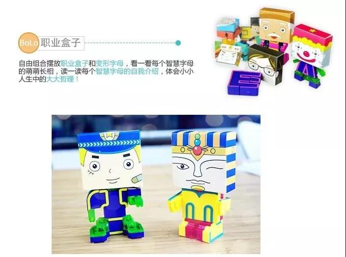 2、【職業(yè)盒子】:自由組合職業(yè)盒子和變形字母,看一看每一個(gè)智慧字母的萌萌的長(zhǎng)相,讀一讀每個(gè)智慧字母的自我介紹,體會(huì)小小人生中的大大哲理。