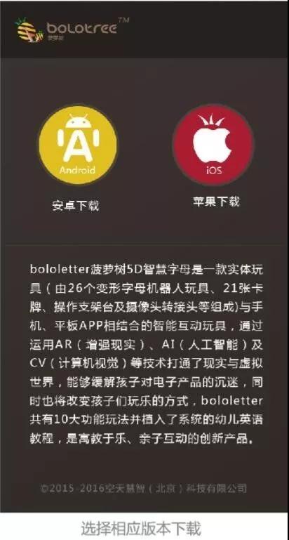 菠蘿樹5D智慧字母(bololetter)由空天慧智(北京)科技有限公司研發(fā),是一套由26個(gè)字母變形機(jī)器人與手機(jī)、平板相結(jié)合的智能互動(dòng)早教產(chǎn)品,運(yùn)用CV(計(jì)算機(jī)視覺)、AI(人工智能)以及AR(增強(qiáng)現(xiàn)實(shí))等技術(shù)將現(xiàn)實(shí)與虛擬世界相連結(jié)。