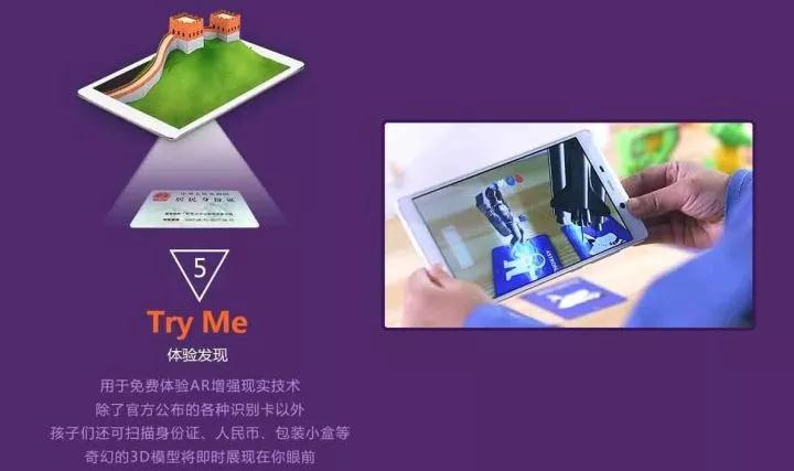 5、【體驗(yàn)發(fā)現(xiàn)】:用于免費(fèi)體驗(yàn)AR增強(qiáng)現(xiàn)實(shí)技術(shù)。除了官方公布的各種識(shí)別卡以外,孩子們還可掃描身份證、人民幣、包裝小盒等,奇幻的3D模型將即時(shí)展現(xiàn)在你眼前。