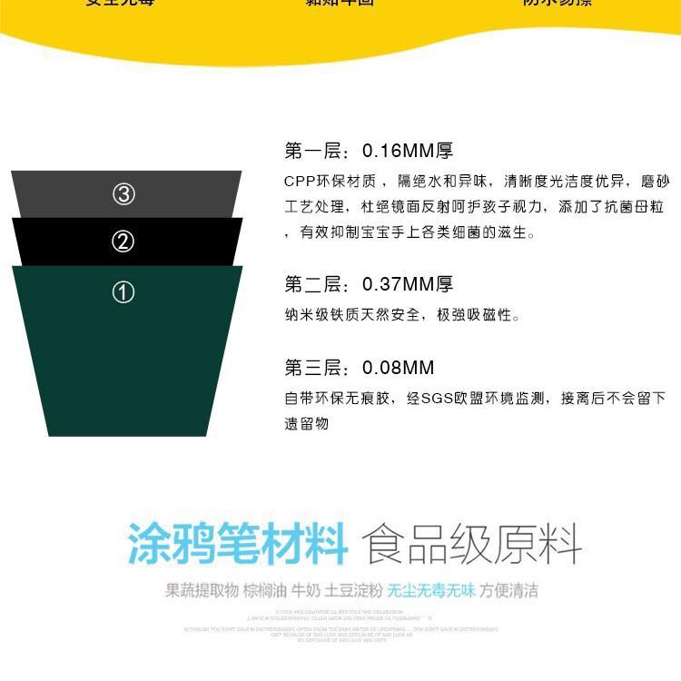 菠蘿樹涂鴉墻膜,進口環保塑膠,表層磨砂處理,不反光,國際標準護眼綠色,多種尺寸供選擇。可用10年,不脫落,不翹邊。含13色食品級可擦洗涂鴉筆禮盒裝,無揮發,無異味,無粉塵,同時配防撞裝飾邊條;高級雪妮絨抹布等; 打造寶寶專屬的涂鴉學習空間!