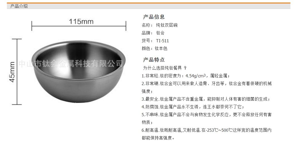 鈦會 純鈦雙層碗 健康餐具 純鈦碗 碗
