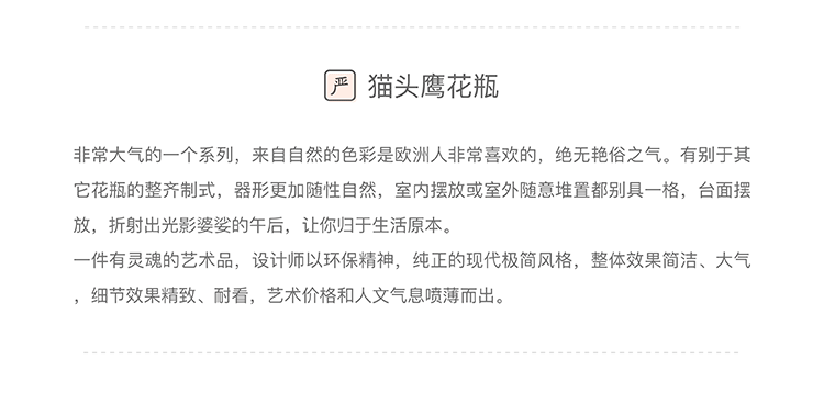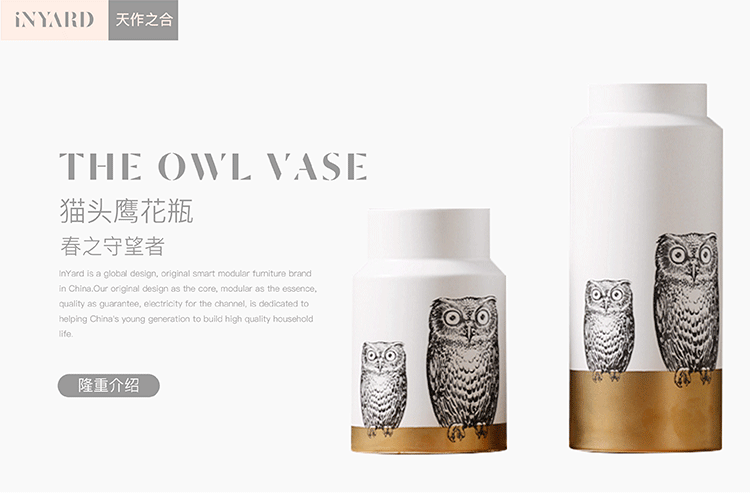 「InYard嚴選」陶瓷創意花瓶插花器客廳家居裝飾品擺件擺設貓頭鷹 舉報 極有家認證[原創設計]:專屬設計,限量生產,只為你造 商家承諾:提供“材質保真”服務,如材質與描述不符可獲賠200%