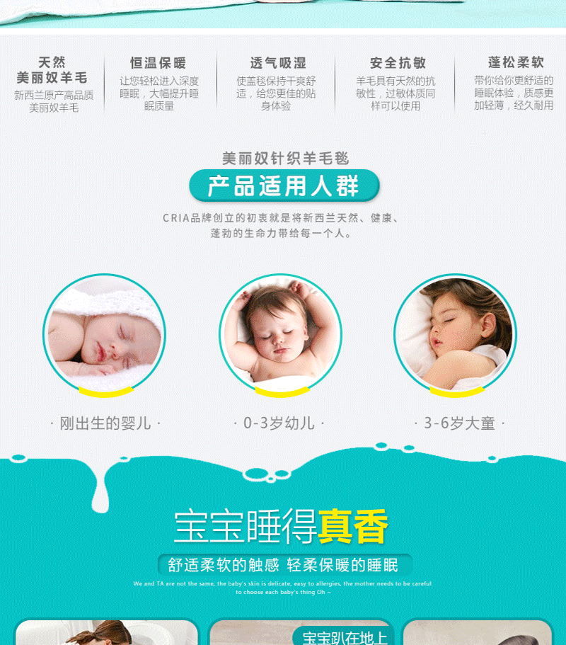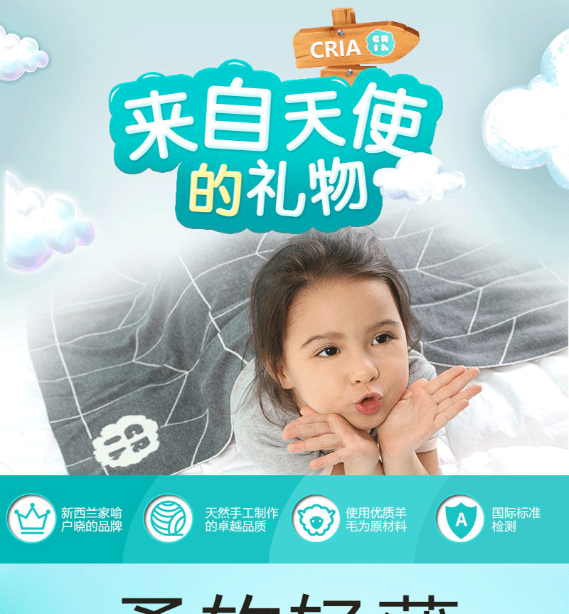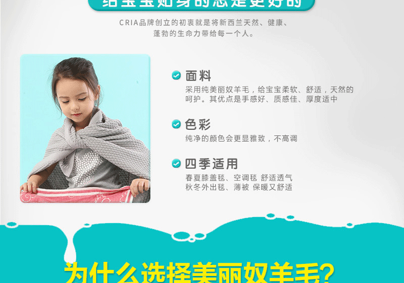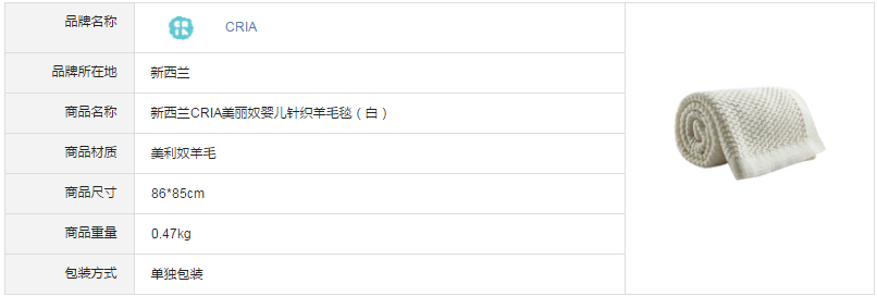 新西蘭原產CRIA美麗奴羊毛針織嬰兒毯羊毛蓋毯白色