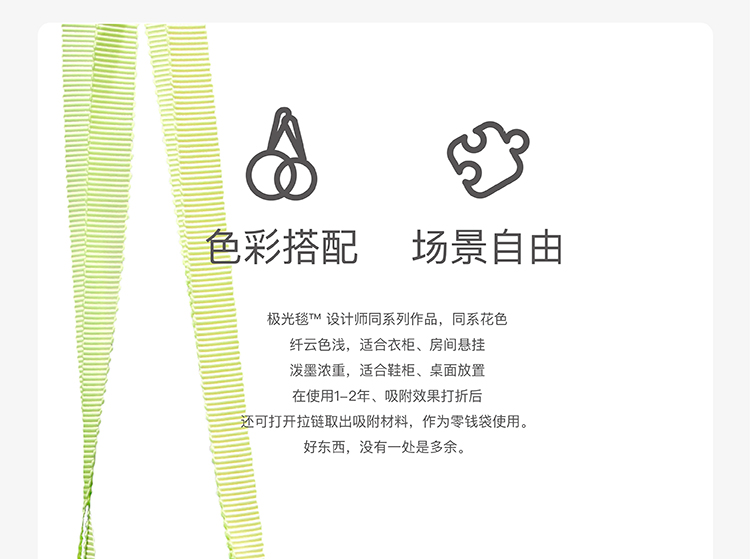 1消除甲醛:消除室內空氣中的甲醛、苯、TVOC等有害物質 2、凈化空氣:獨有的分子篩自然過濾凈化空氣 :3殺菌消毒:抑制黃色葡萄球菌及大腸桿菌 4、除臭去味:獨有天然納米除臭材料自然去除各種甲醛異味 5、防螨除虱:對螨蟲,壁虱等寄生蟲具有較強抑 舉報 極有家認證[原創設計]:專屬設計,限量生產,只為你造 商家承諾:提供“送貨入戶”服務,如未履行服務最高可獲得200元賠付