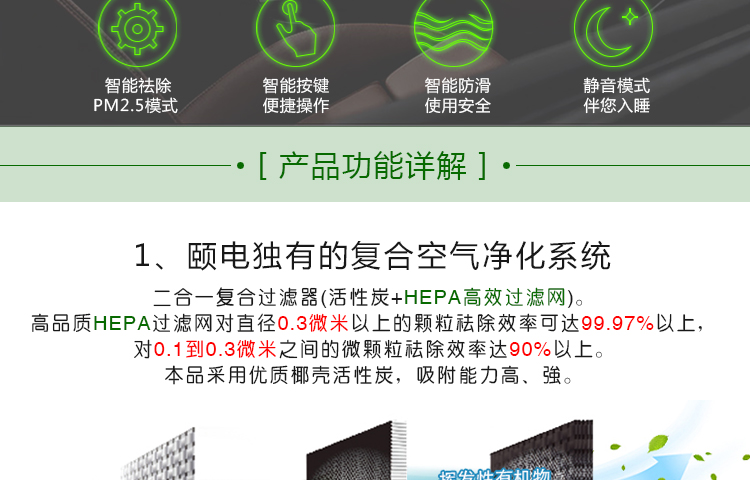 3、智能空氣質量探測,顯示實際空氣質量,進行高效清潔