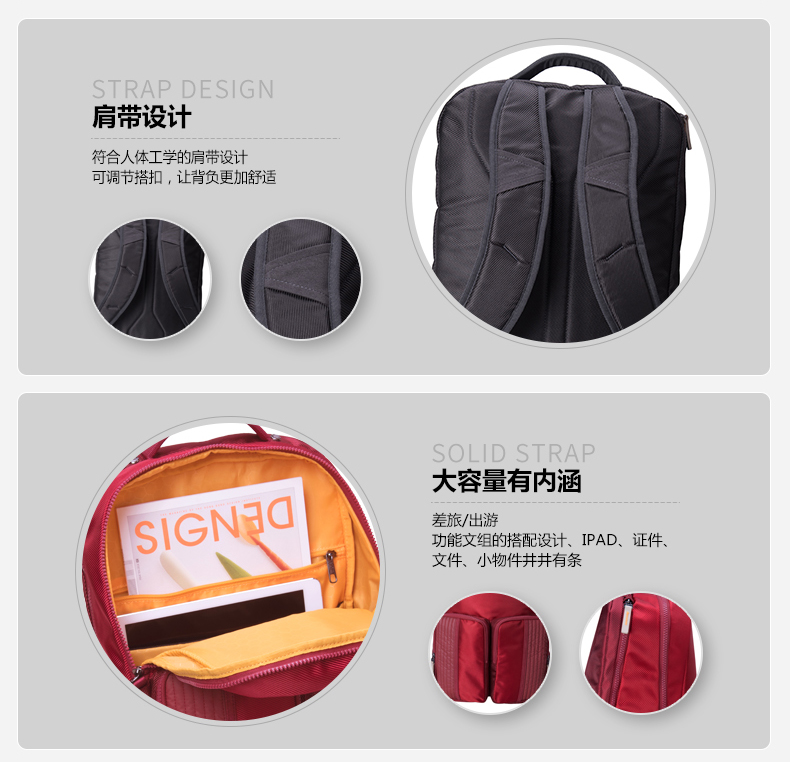 內部結構: 網袋 拉鏈暗袋 手機袋 夾層拉鏈袋 電腦插袋