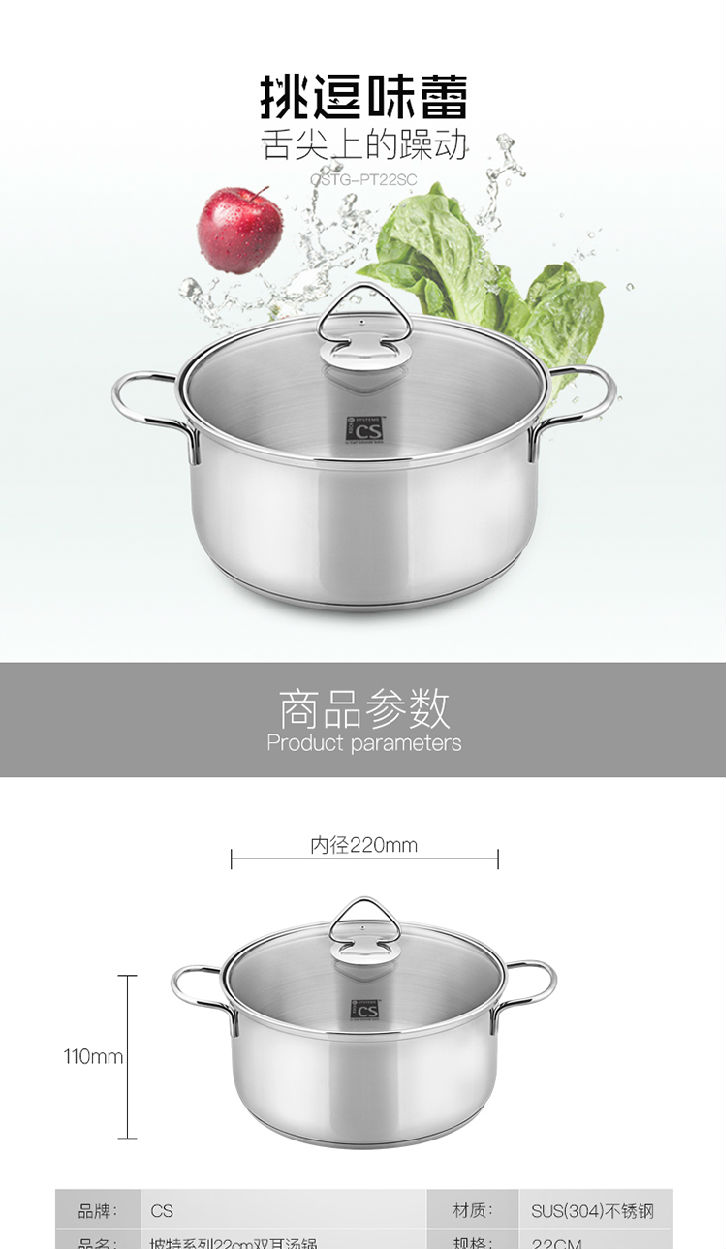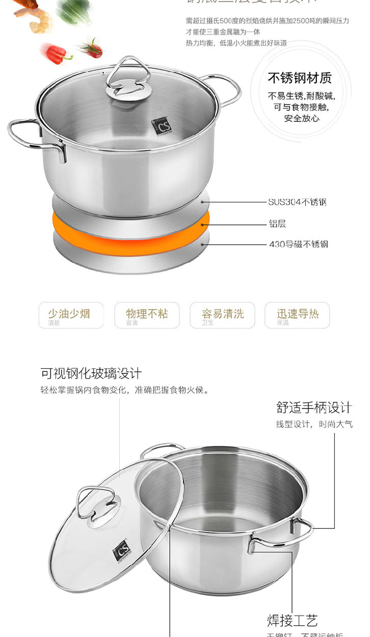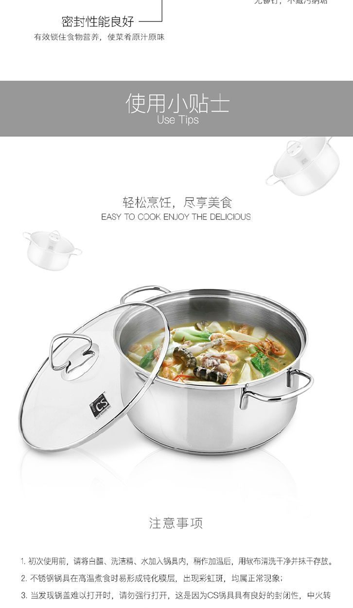 商品名稱(chēng):德國(guó)CS 304不銹鋼復(fù)底湯鍋燉煮鍋 電磁爐通用 22cm