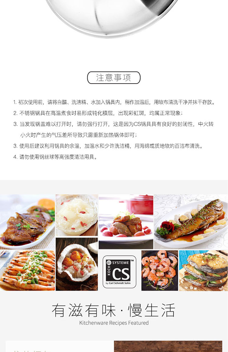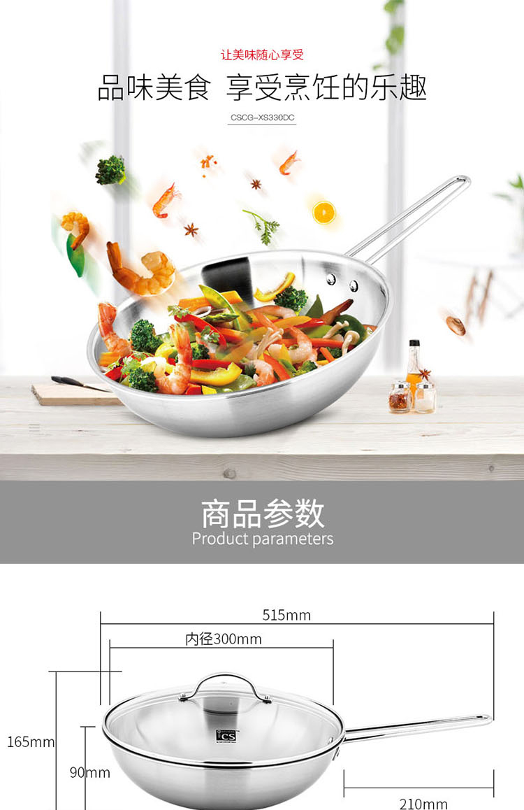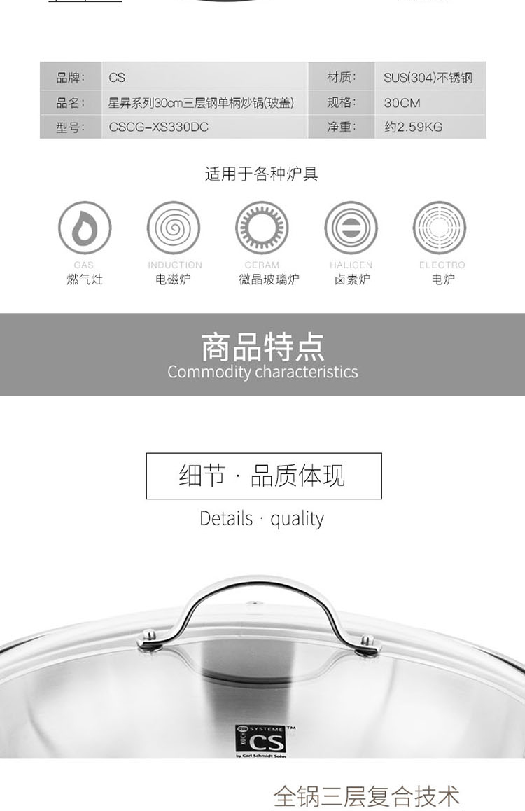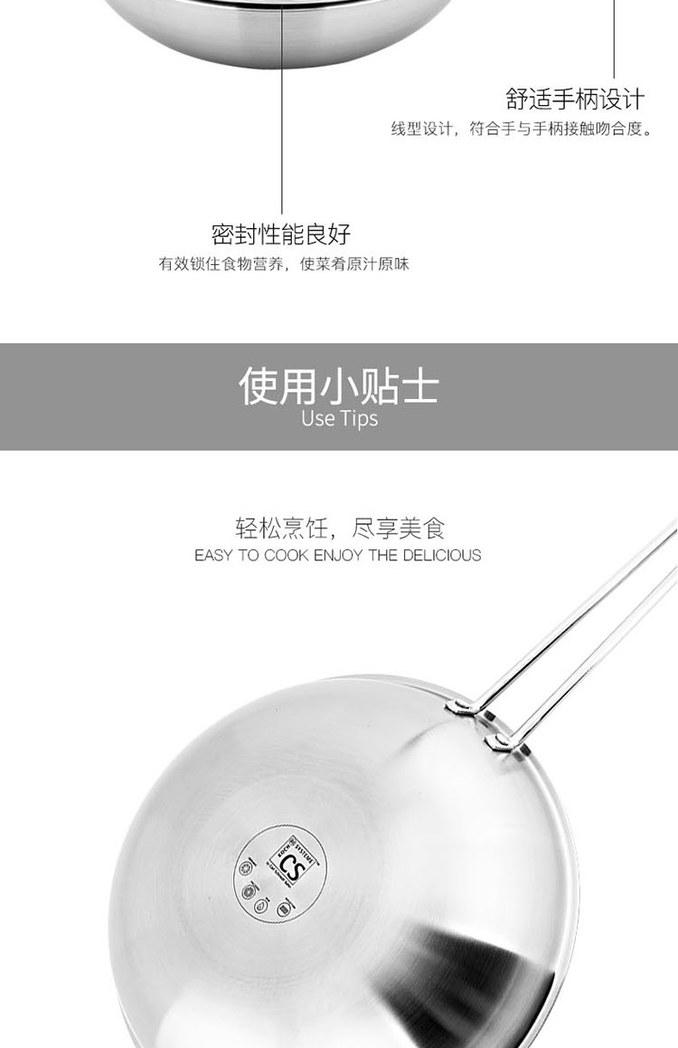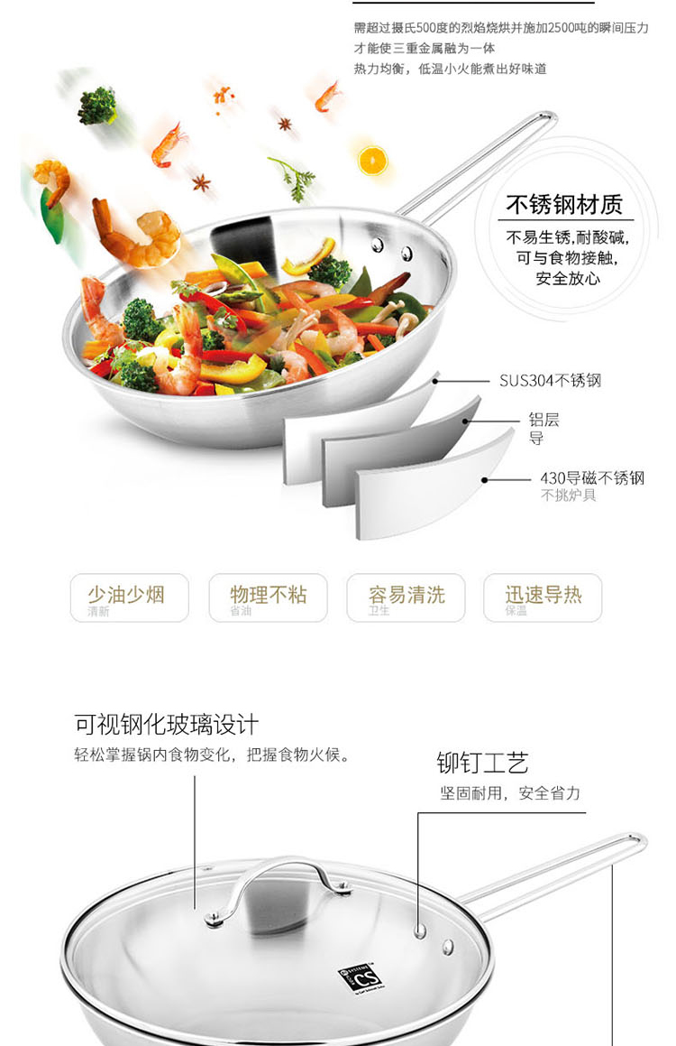 商品名稱:德國CS 304不銹鋼炒鍋 無涂層少油煙物理不粘燃氣灶電磁爐可用 30cm