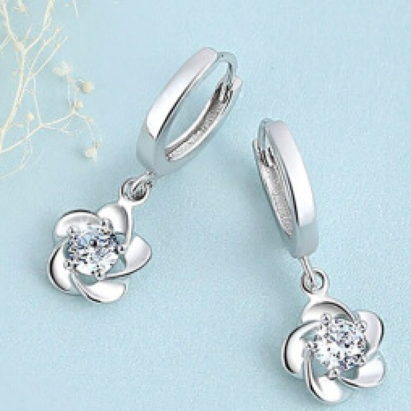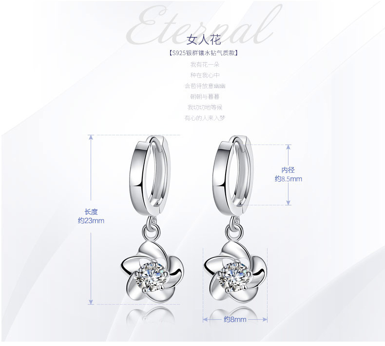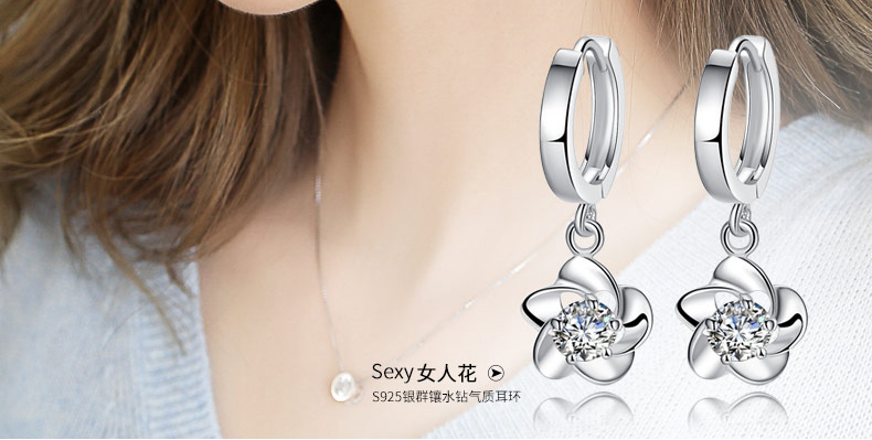 商品名稱:925純銀耳環女款 時尚耳墜耳釘飾品梅花耳環耳墜銀飾品 生日送女友感恩圣誕節禮物 純銀一對