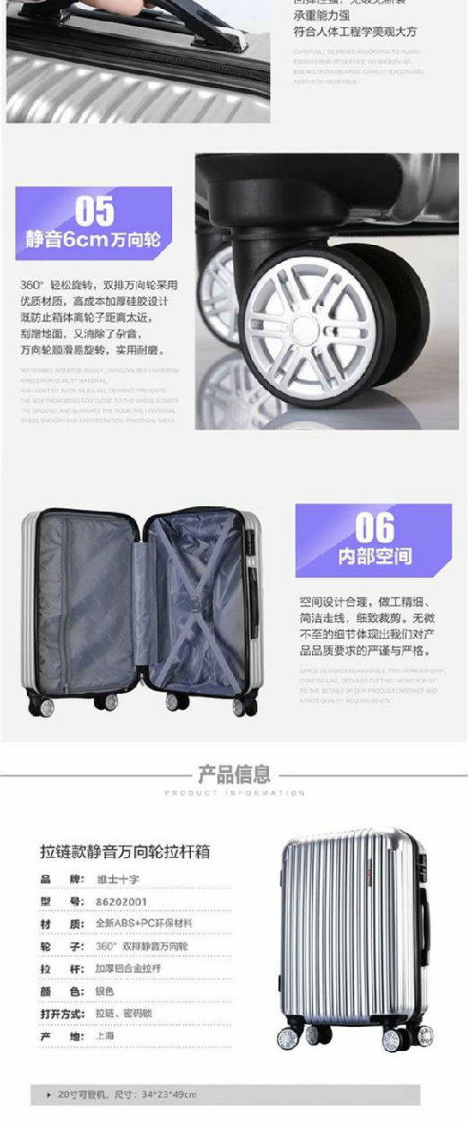 維士十字拉桿箱20寸登機箱行李箱360°萬向輪