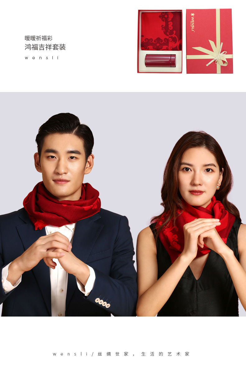 萬事利 祈福彩暖暖套裝 鴻福吉祥套裝 圍巾 +保溫杯