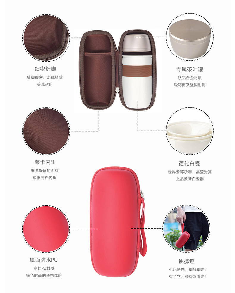 配置參數(shù):彩盒X1, 便攜旅行包X1,陶瓷茶壺X1, 茶葉罐X1,陶瓷杯X2