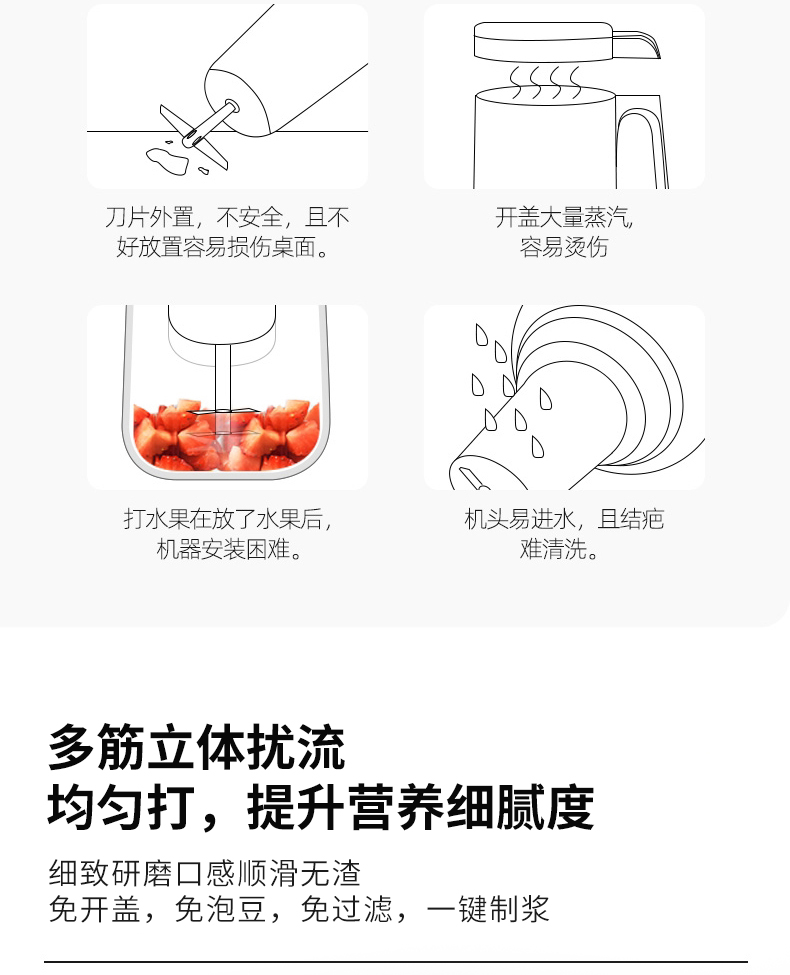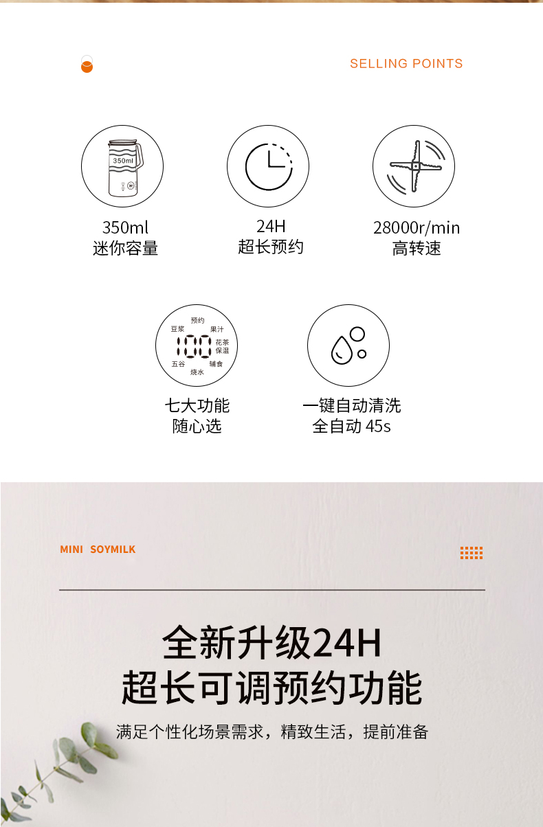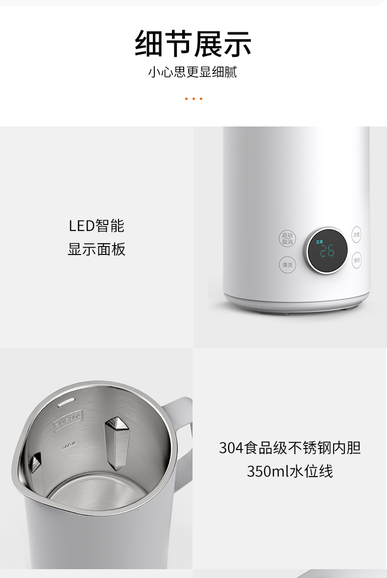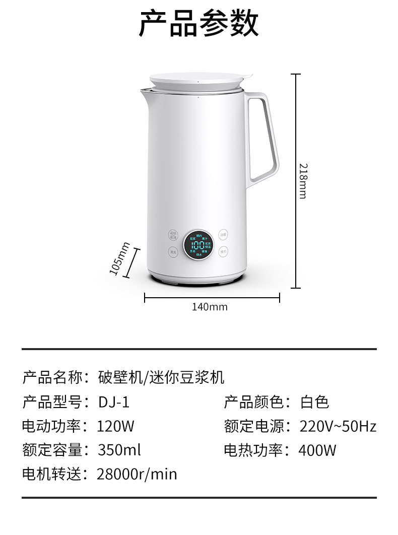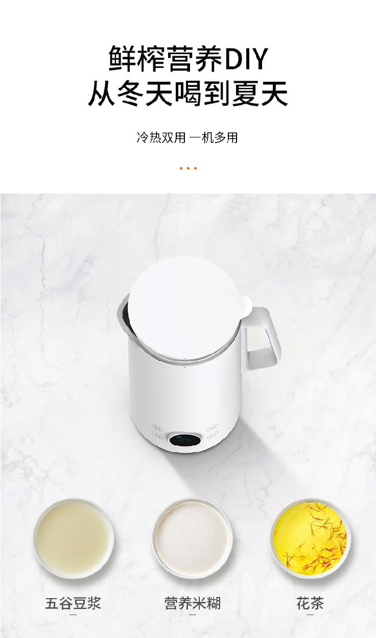 1、功能多樣,打豆?jié){、榨果汁、燒開水、做輔食、保溫等 2、打豆?jié){無需泡豆、豆?jié){細膩無需濾渣。 3、每分鐘28000轉(zhuǎn),破壁標準 4、精致小巧、液晶顯示 5、一鍵清洗功能,配送清潔刷讓清洗更方便