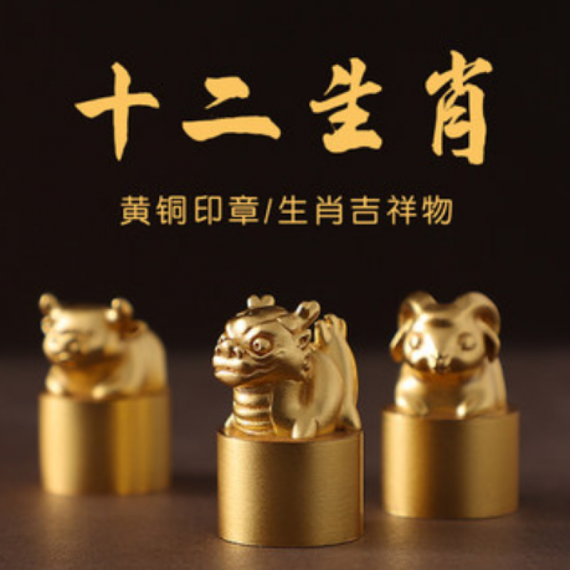 孔府印閣十二生肖黃銅印章定制,實心黃銅鑄造,可定制印底內容