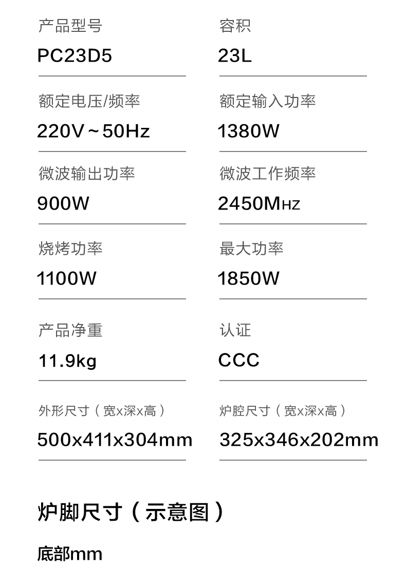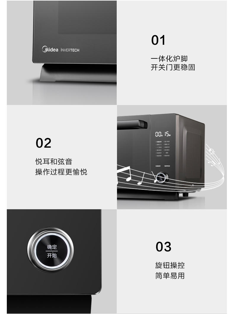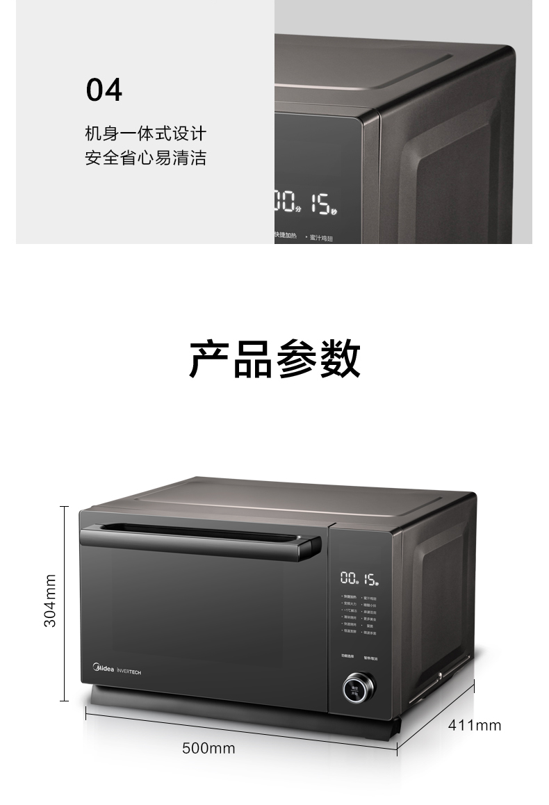 美的(Midea)微波爐蒸烤箱一體家用智能小型平板變頻光波爐 PC23D