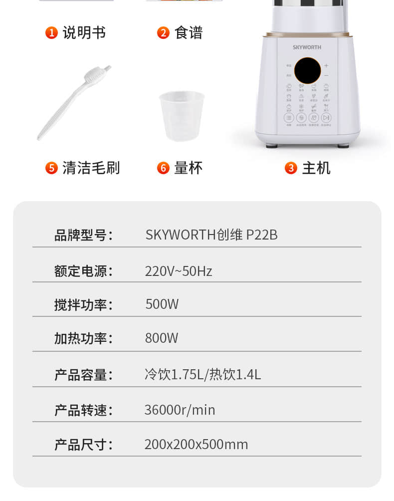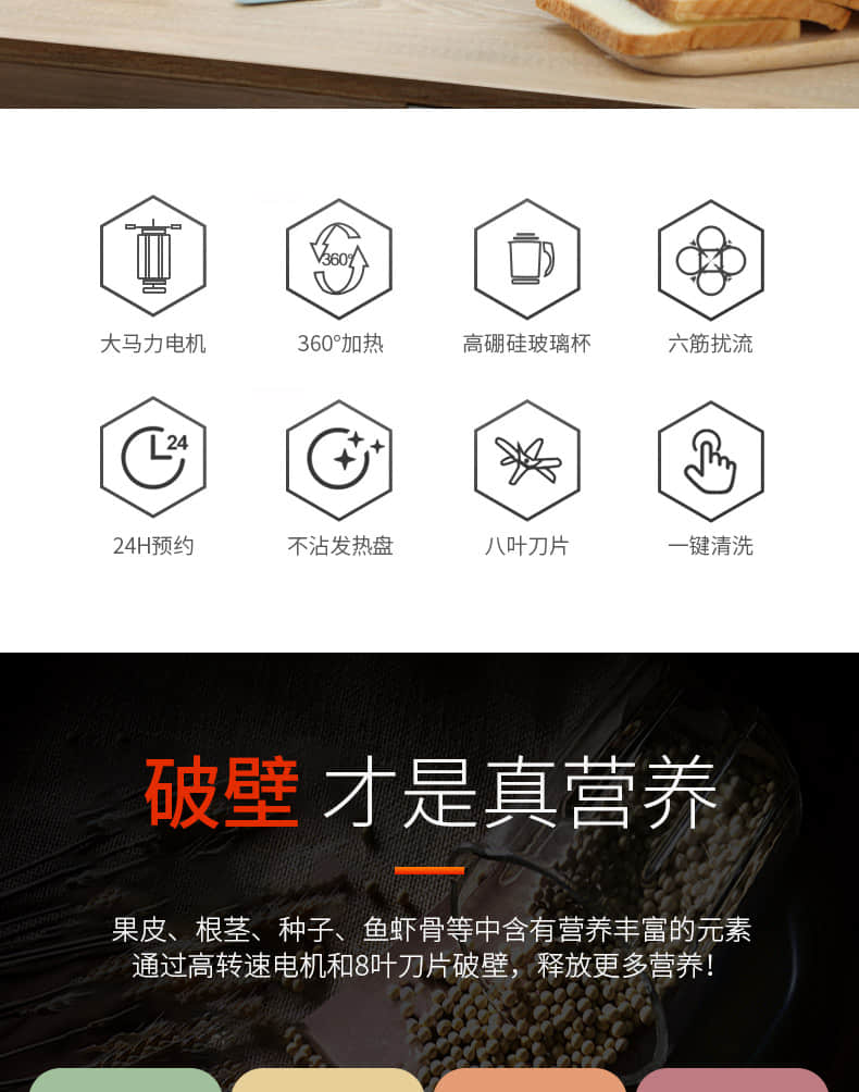 功能:預約定時,破壁磨粉,營養輔食