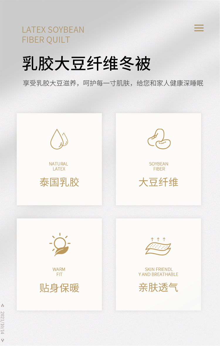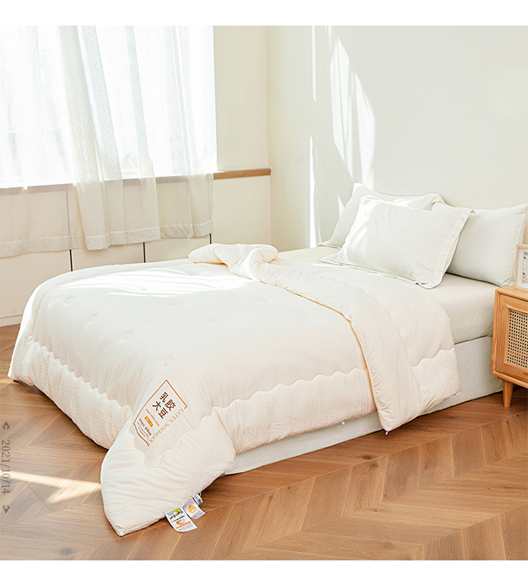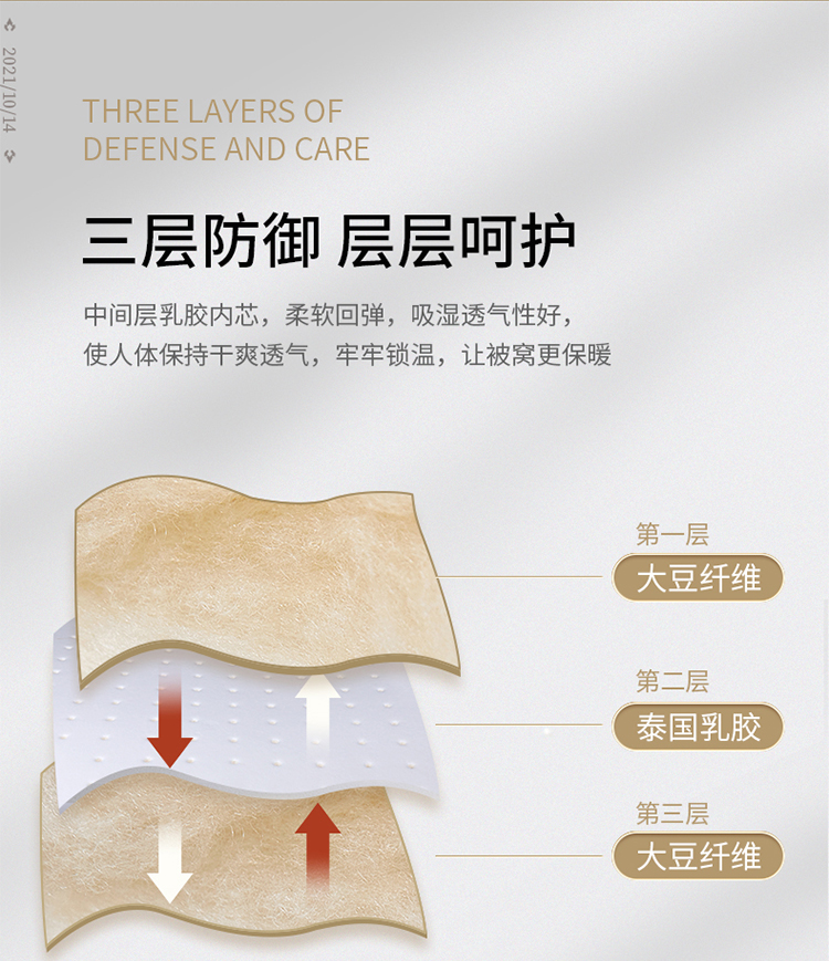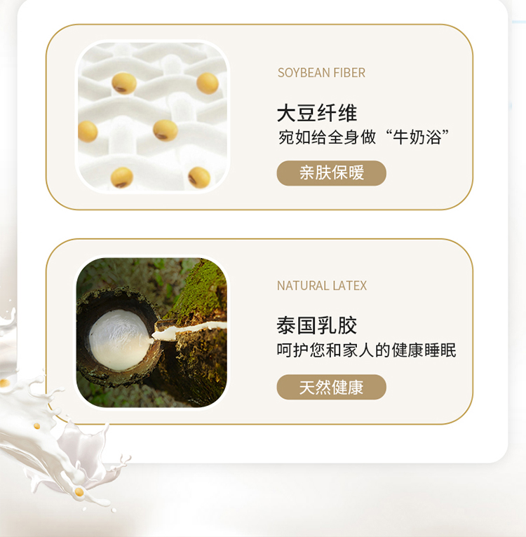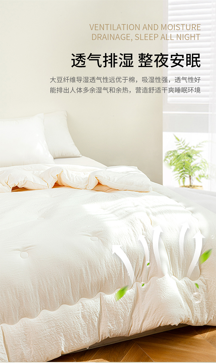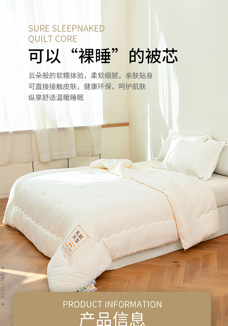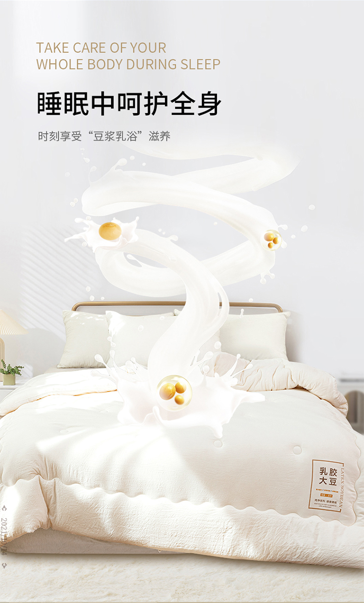 ?被子填充物:乳膠+大豆纖維(10%蛋白改性聚乙烯醇纖維+90%聚酯纖維)