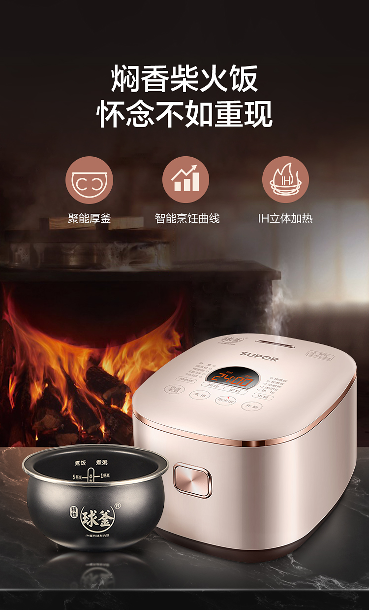 蘇泊爾(SUPOR)ZMD安心系列 4升電飯煲IH電磁加熱加厚球釜大容量智能電飯煲宿舍多功能煮飯鍋4-6人