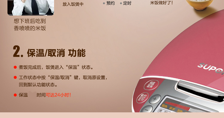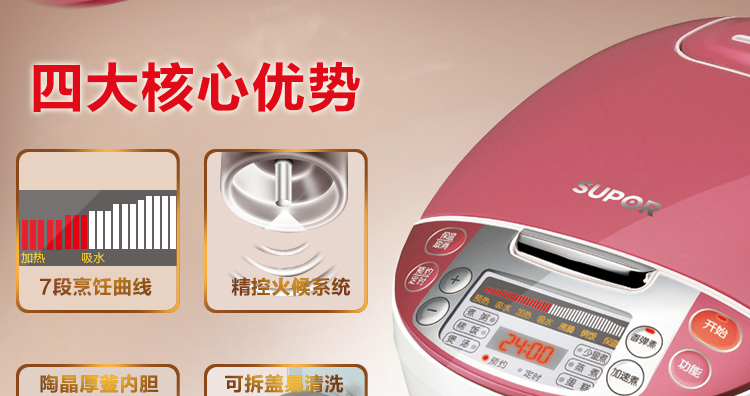 蘇泊爾(SUPOR)電飯煲多功能智能電飯鍋CFXB40FC29-75厚釜內(nèi)膽預(yù)約4L 粉紅色