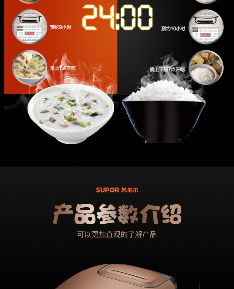 蘇泊爾(SUPOR) CFXB40FC5033A-75 24小時預約電飯煲 創新熱對流鍋體 香味四溢 微壓烹飪技術電飯鍋