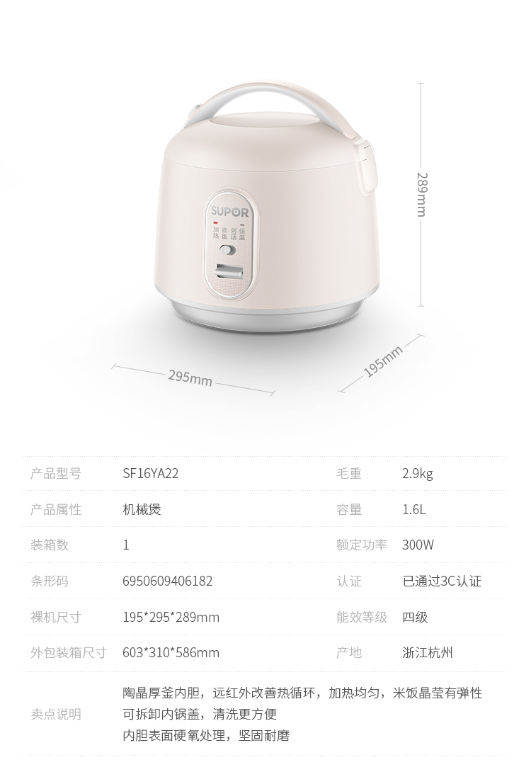 蘇泊爾 SUPOR 電飯煲迷你1.6L學生宿舍機械電飯鍋 SF16YA22
