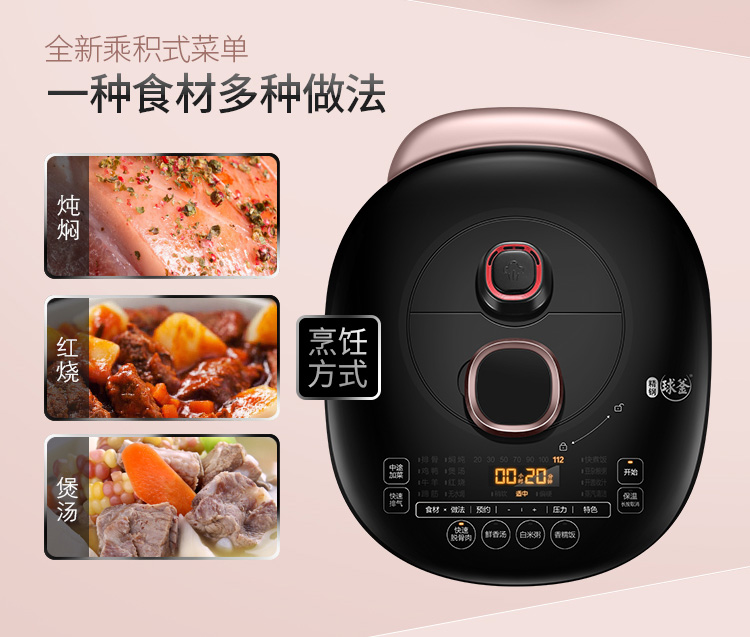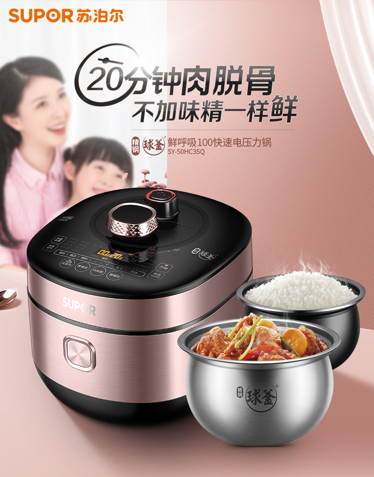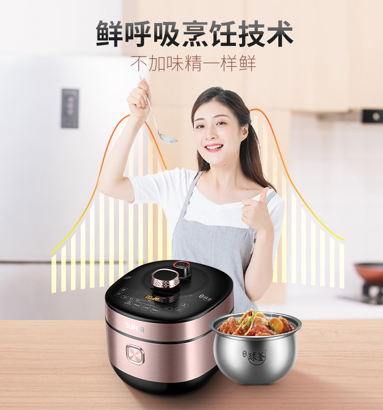 蘇泊爾(SUPOR)電壓力鍋大容量IH智能鮮呼吸IH電磁加熱電高壓鍋5L球釜雙內膽112kpa SY-50HC35Q