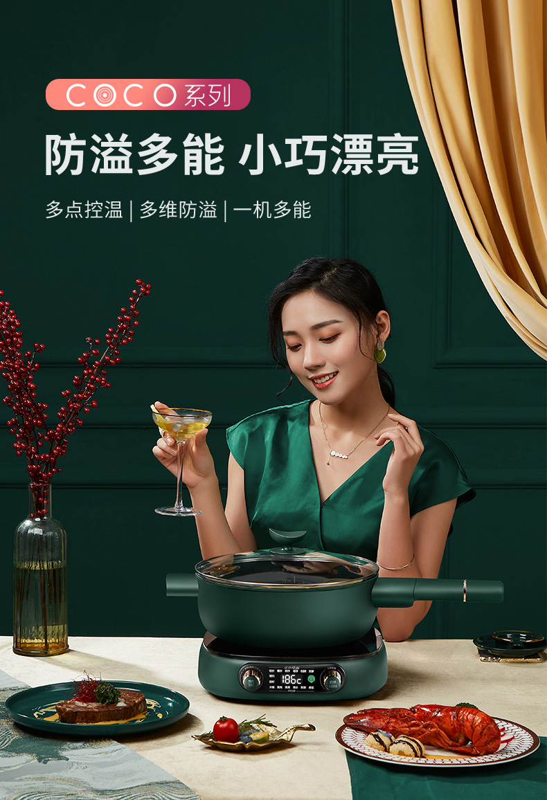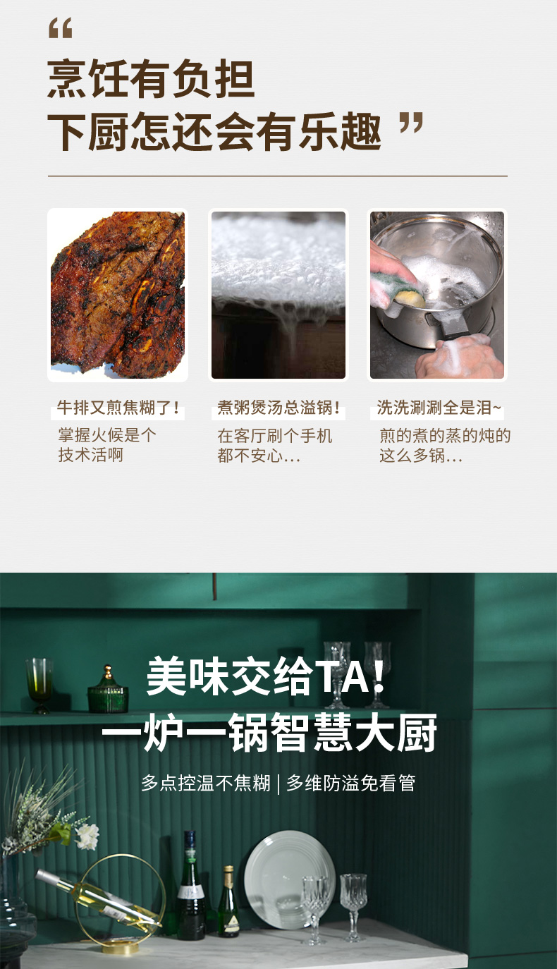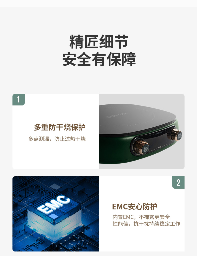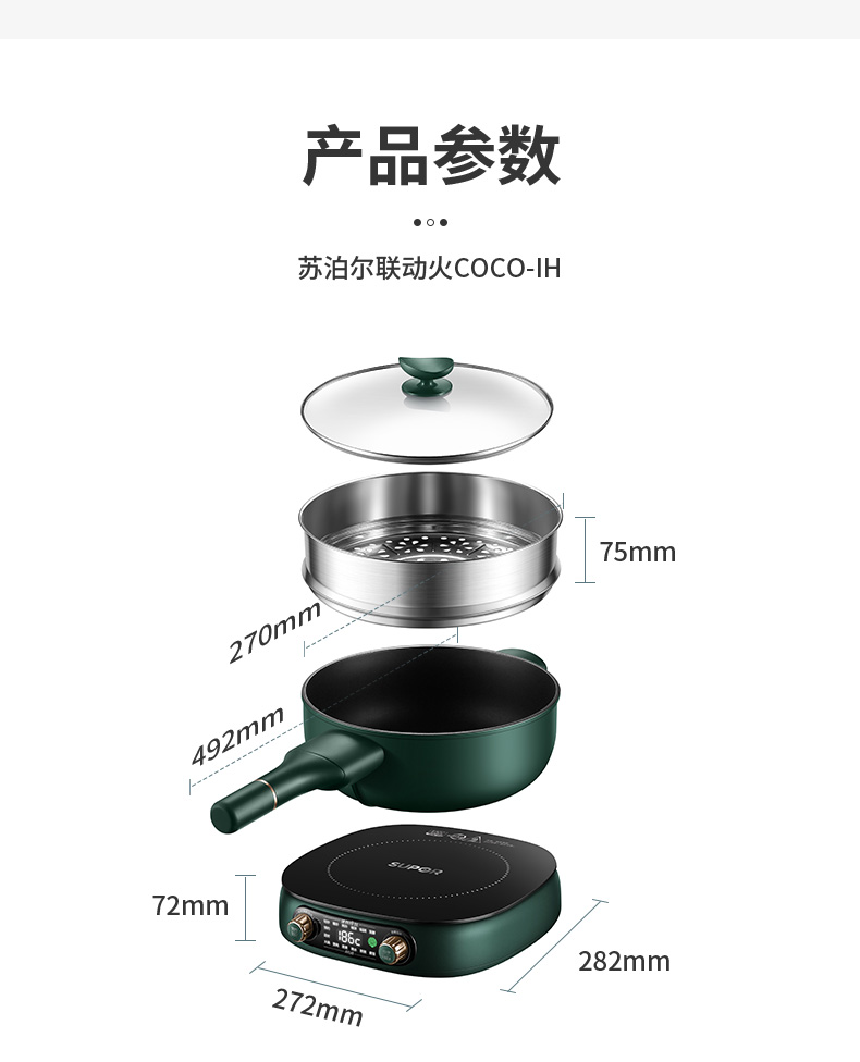 蘇泊爾(SUPOR)電磁爐套裝 2100W大火力 多點精控溫度 多維立體防溢可拆把柄鍋具 一爐多能 電池爐C21-ICD33
