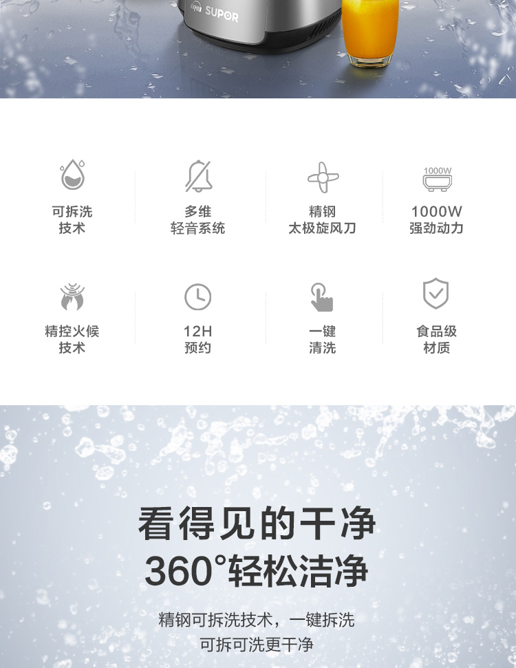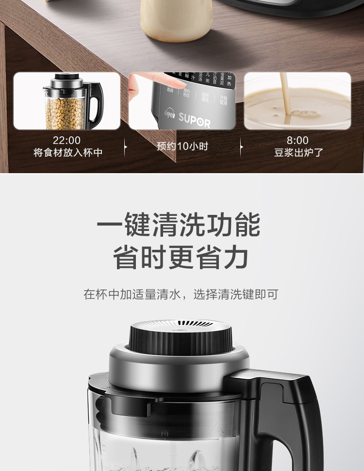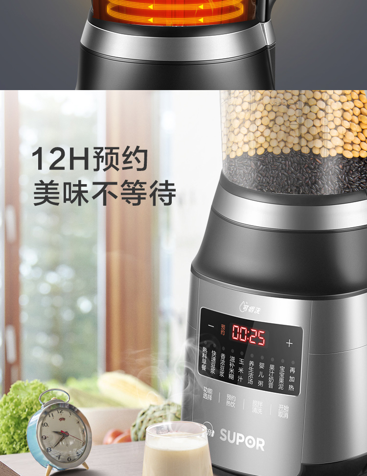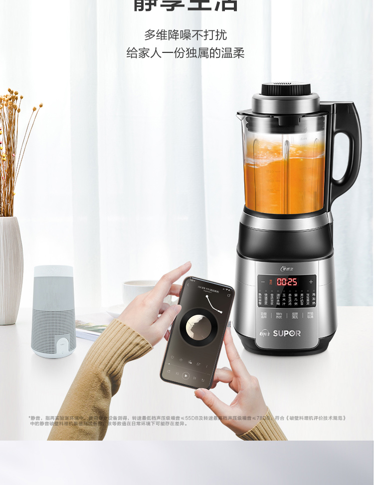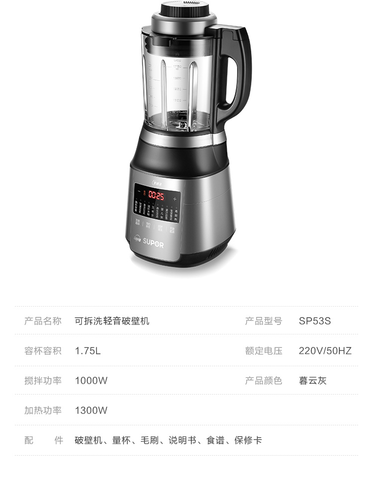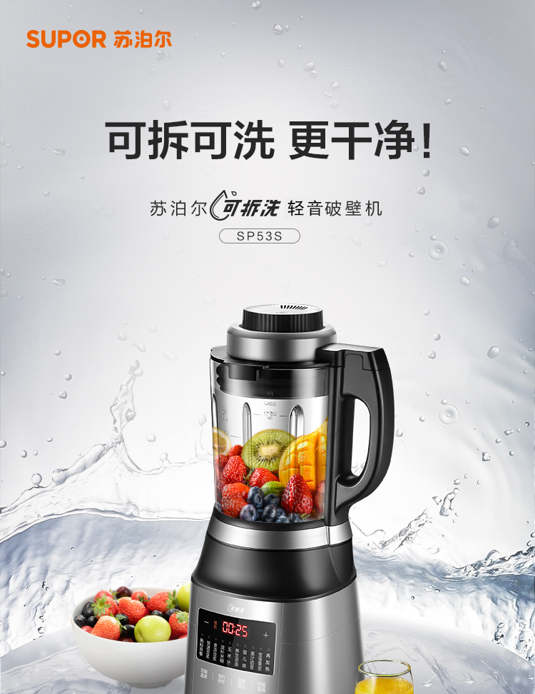 蘇泊爾 (SUPOR)可拆洗低音破壁家用智能預約加熱破壁料理機絞肉機果汁機輔食機SP53S
