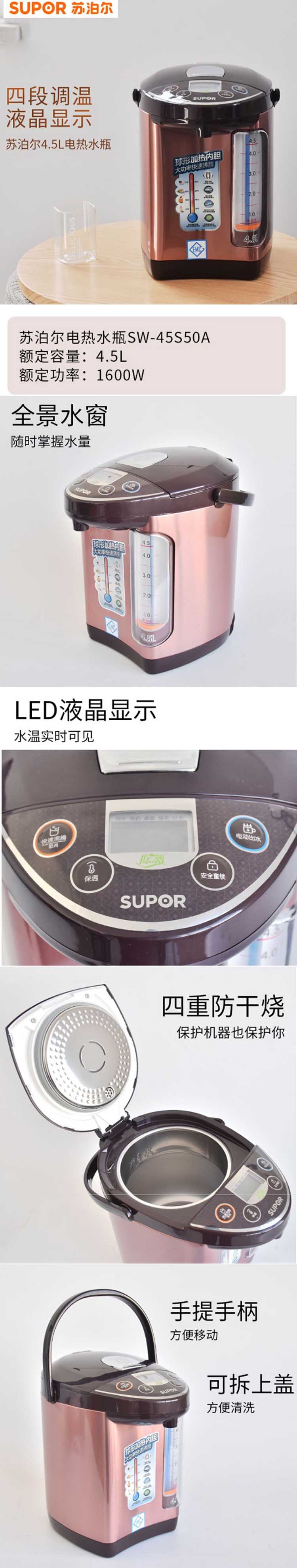 蘇泊爾(SUPOR)SW-45S50A 電水壺電熱水壺多功能家用電熱水瓶四段調溫全景水窗安全防干燒雙層防燙液晶顯溫