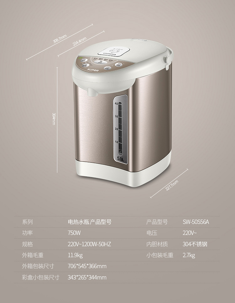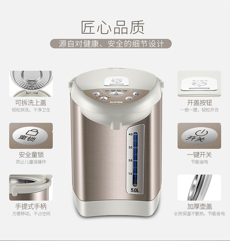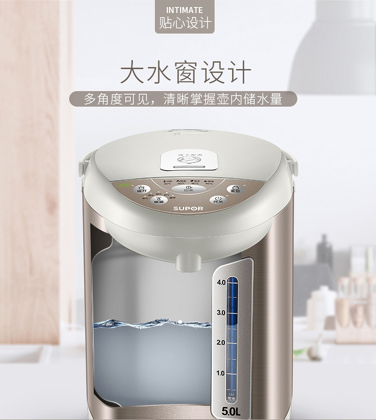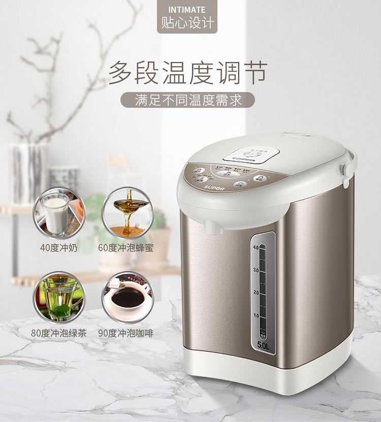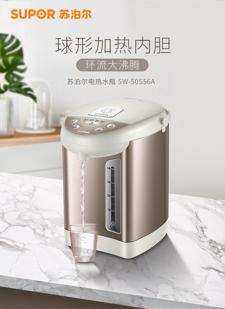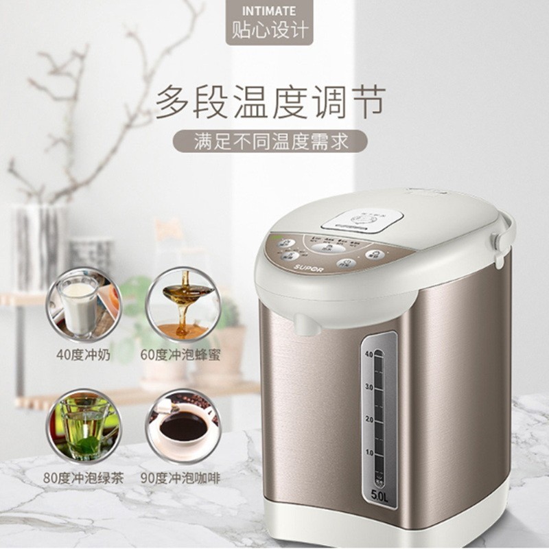 蘇泊爾(SUPOR)電熱水瓶 電熱水壺燒水壺 5L容量 多段溫控電水壺 雙層防燙 304不銹鋼開水壺 50S56A