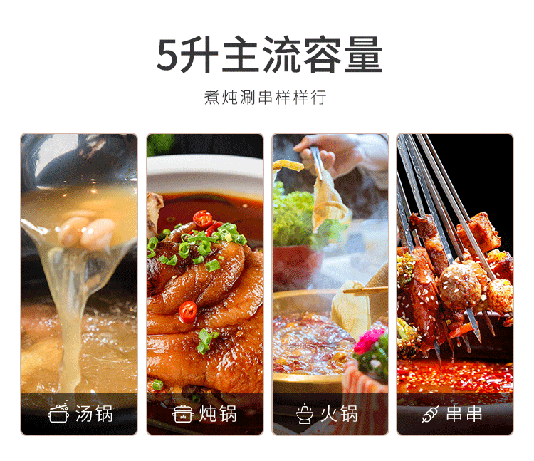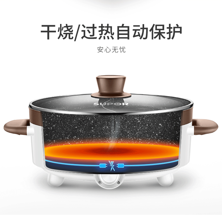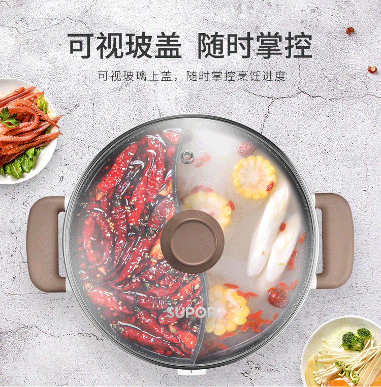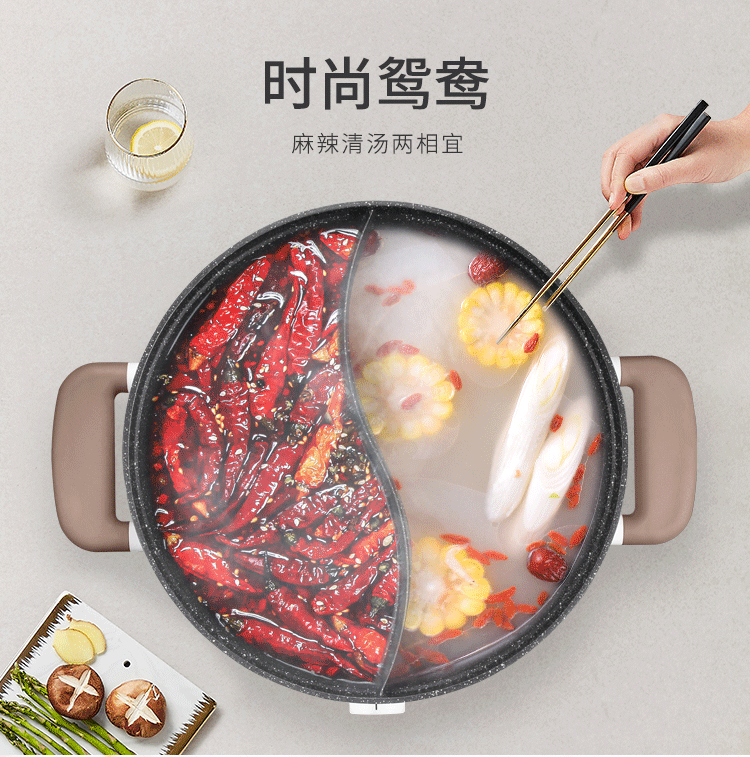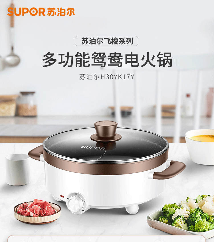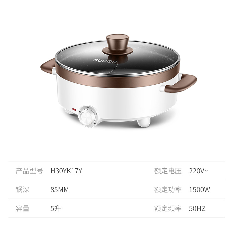 蘇泊爾 ZMD安心系列 電火鍋 5L 多功能鴛鴦電火鍋 燉煮涮串 極簡旋鈕 4檔火力 家用不沾多功能 H30YK17Y-150