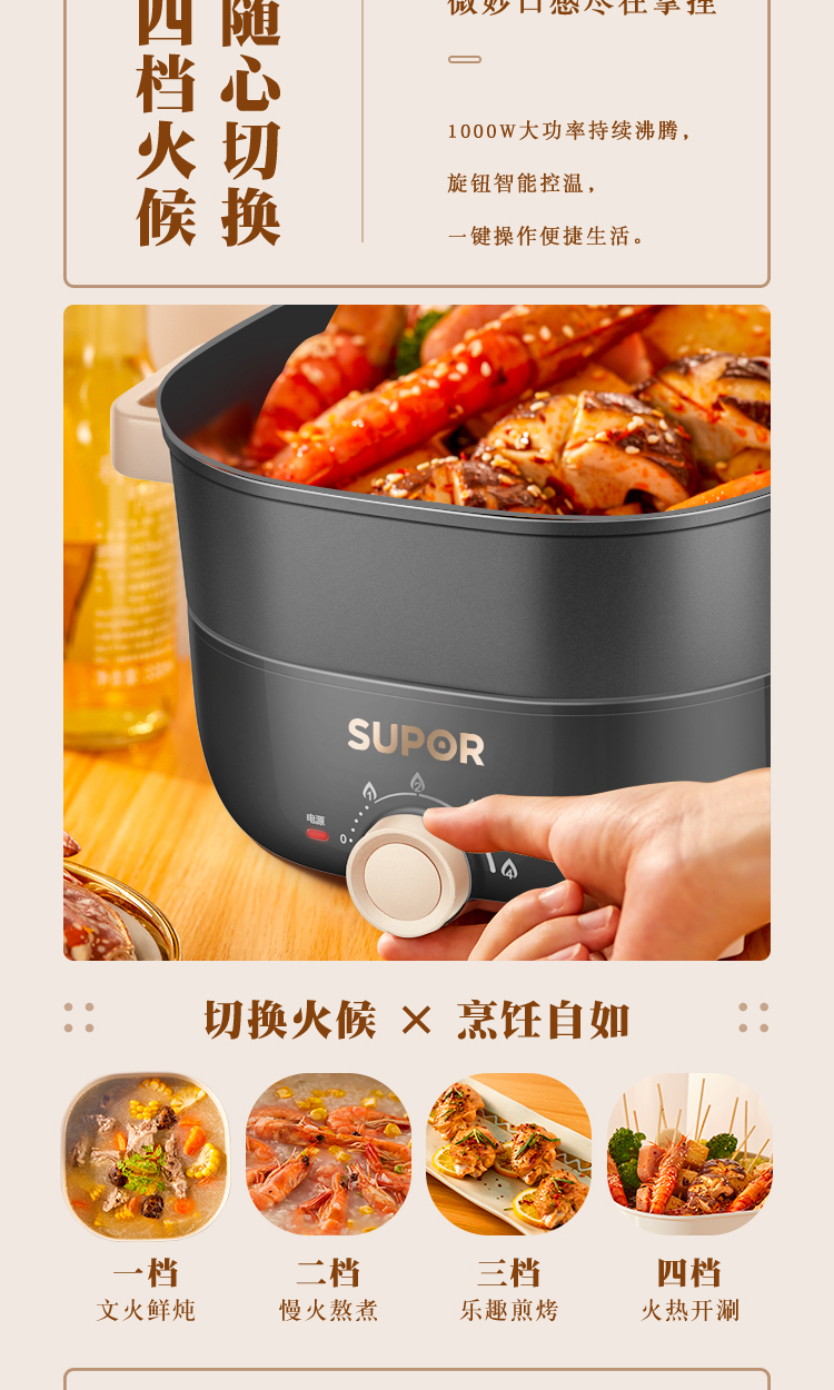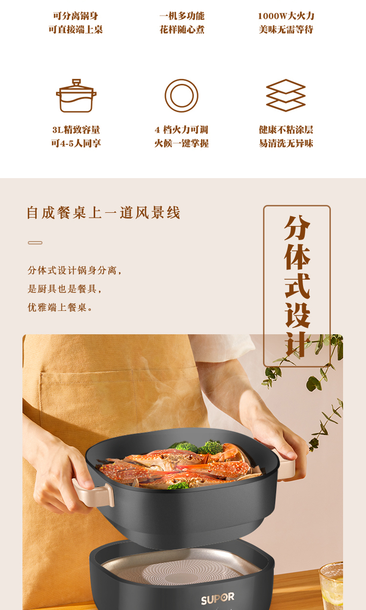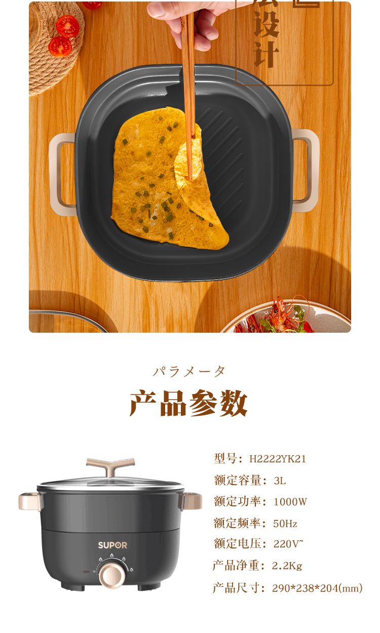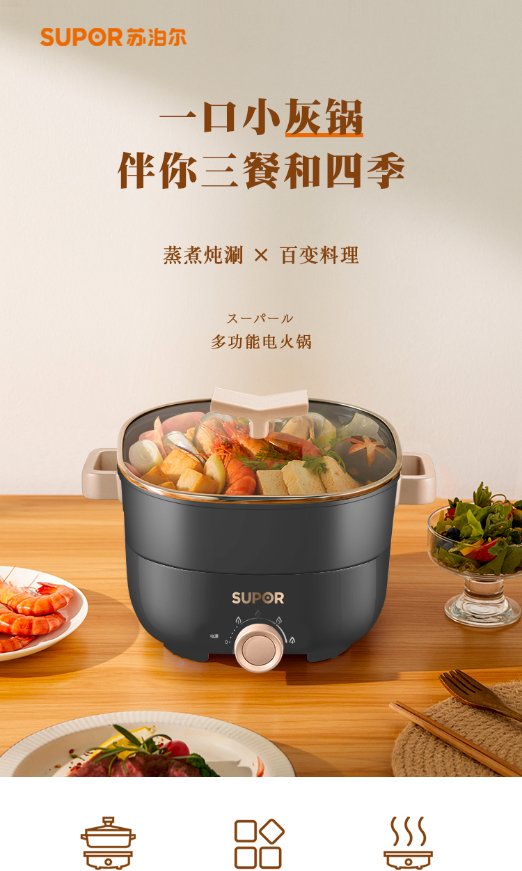 蘇泊爾(SUPOR)H2222YK21 多功能電(熱)火鍋 灰色