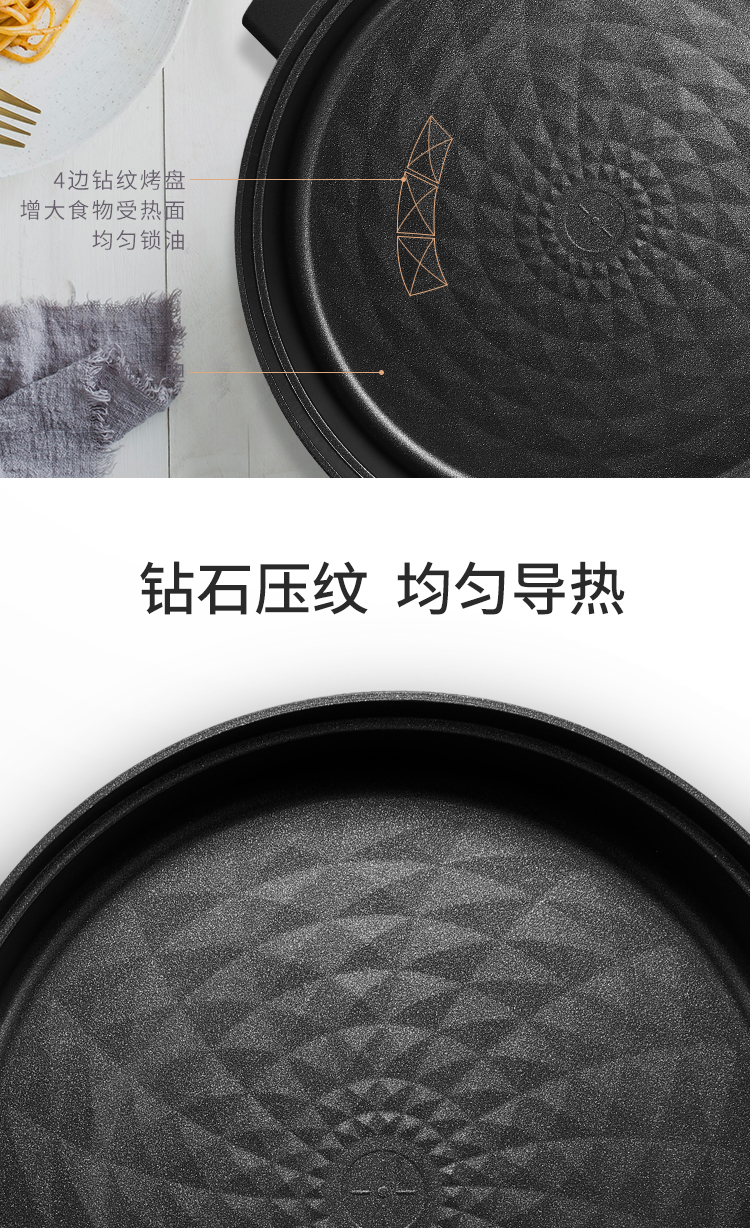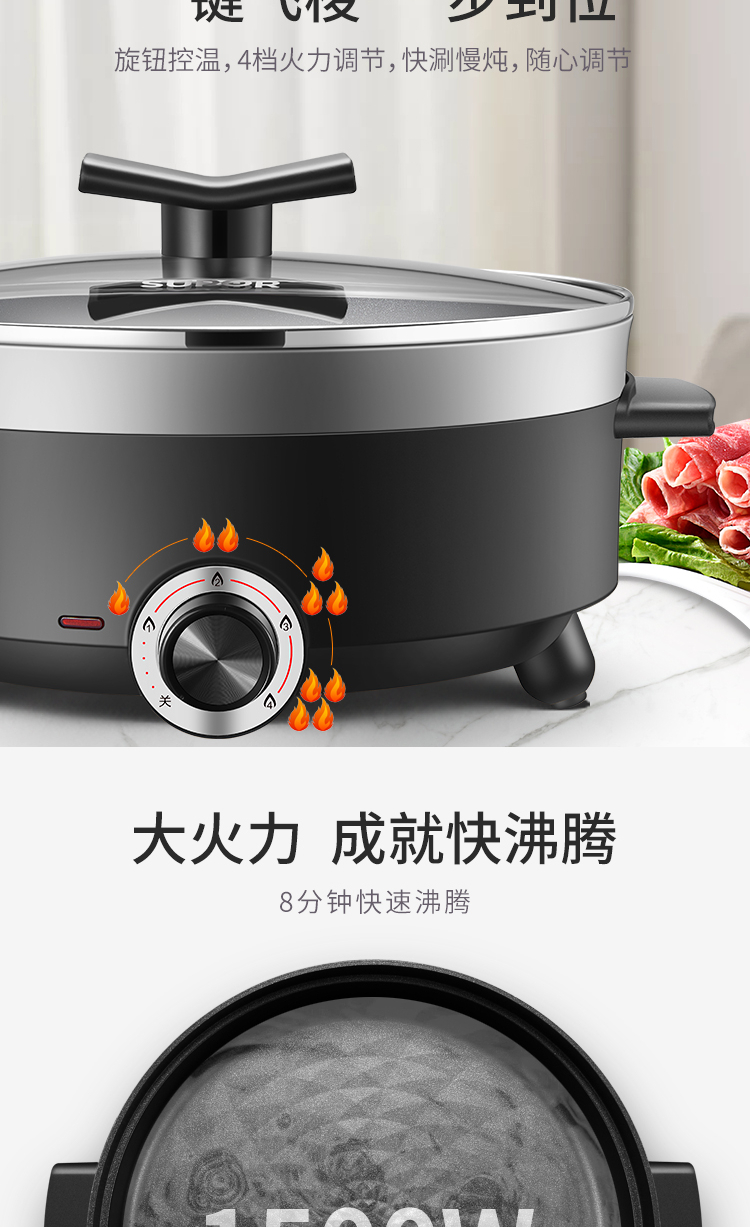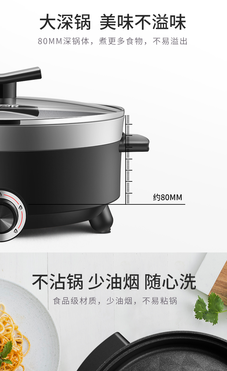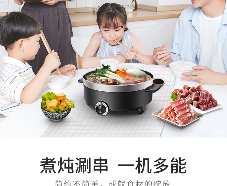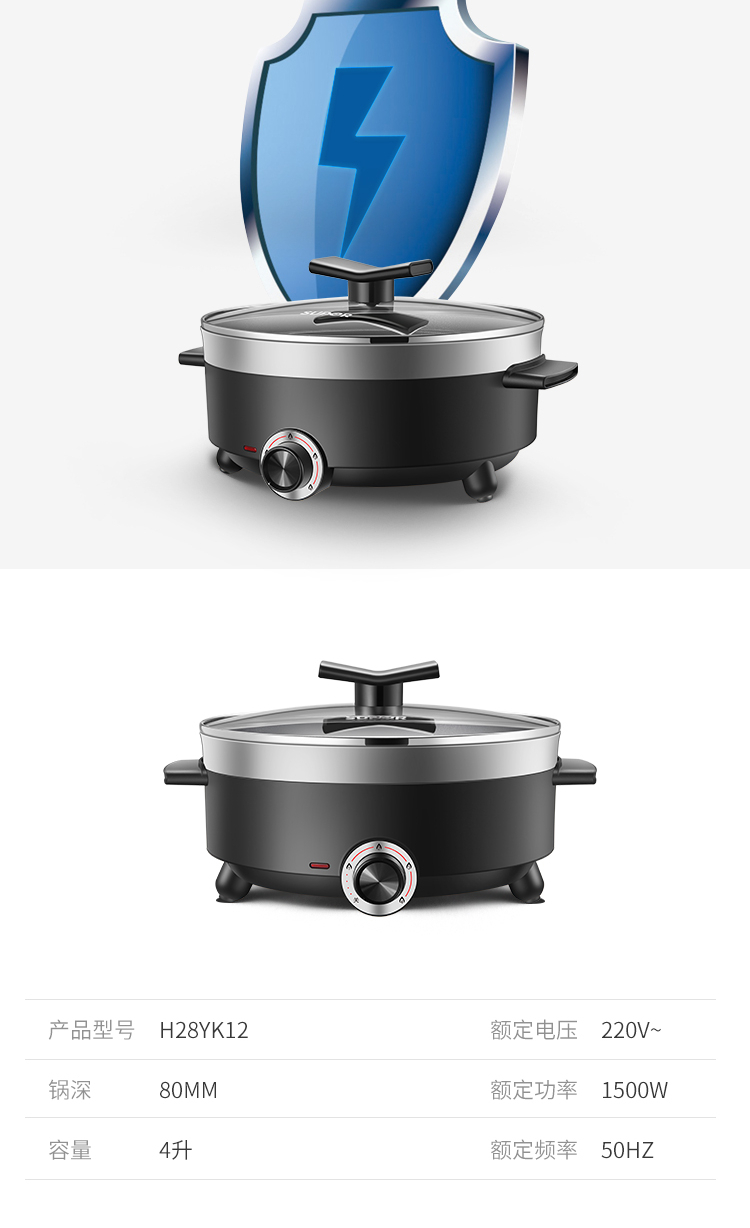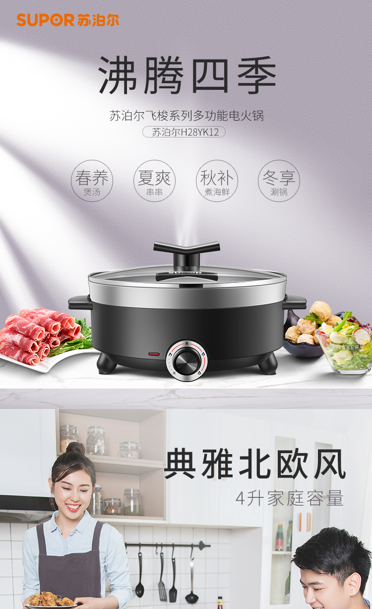 蘇泊爾(SUPOR)電火鍋家用電鍋多功能煎烤機電煮鍋燉煮燜涮多用途鍋韓式電熱鍋4升大容量網紅不粘鍋 H28YK12