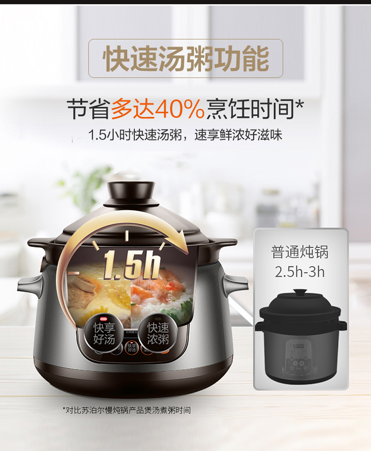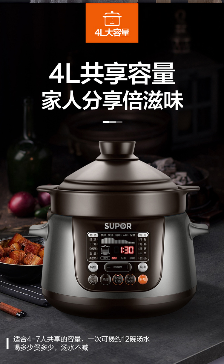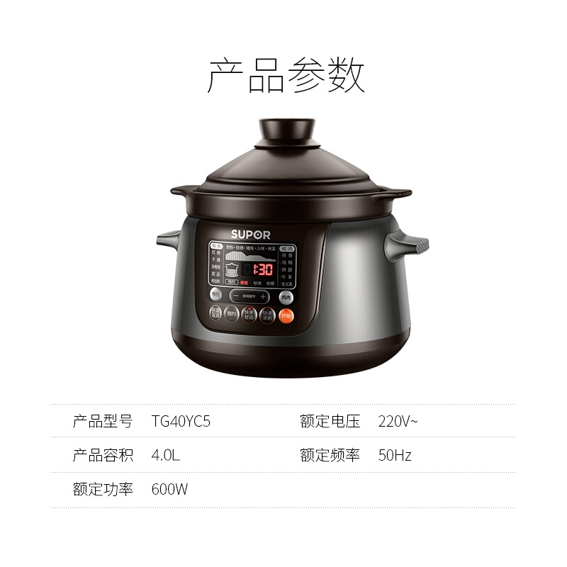 蘇泊爾 SUPOR 電燉鍋 電燉盅 煲湯鍋燉湯鍋 煮粥鍋 精控快速熾陶電燉鍋 4L容量 TG40YC5