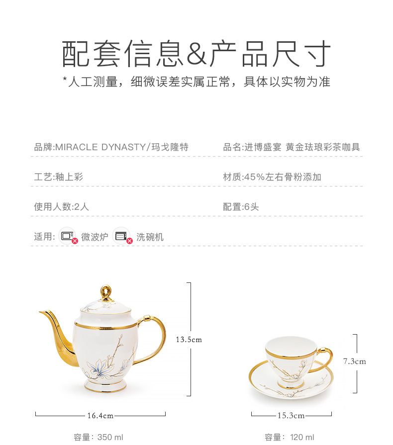 瑪戈隆特 6頭進博茶咖具進博玉蘭-黃金琺瑯彩