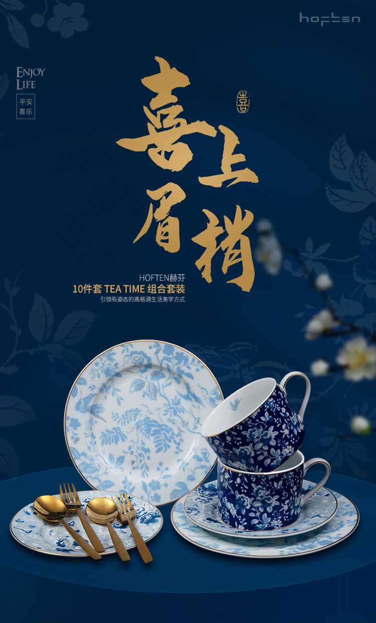 赫芬喜上眉梢10件套下午茶陶瓷套裝